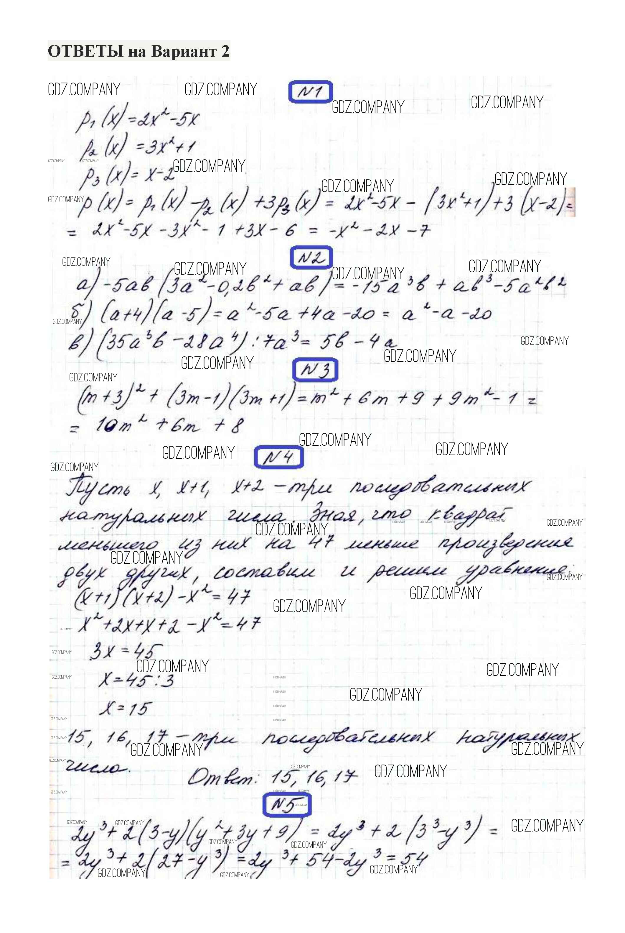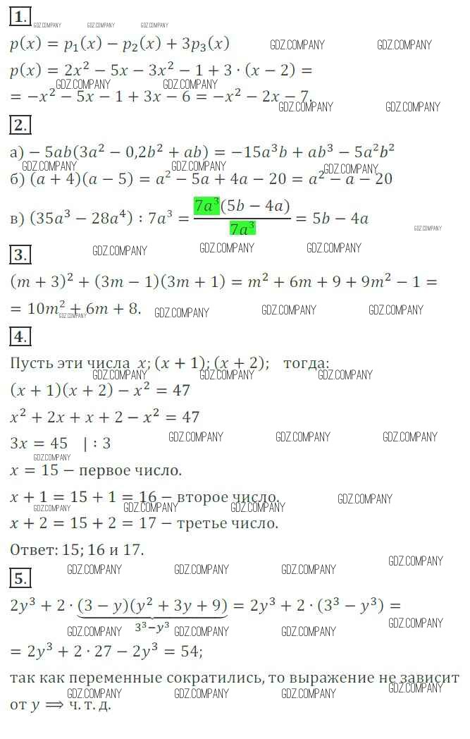 Здесь готовые ответы по Алгебре за 7 (седьмой) класс от Александрова Контрольные работы (издательство: Мнемозина от 2017 г.) № 2