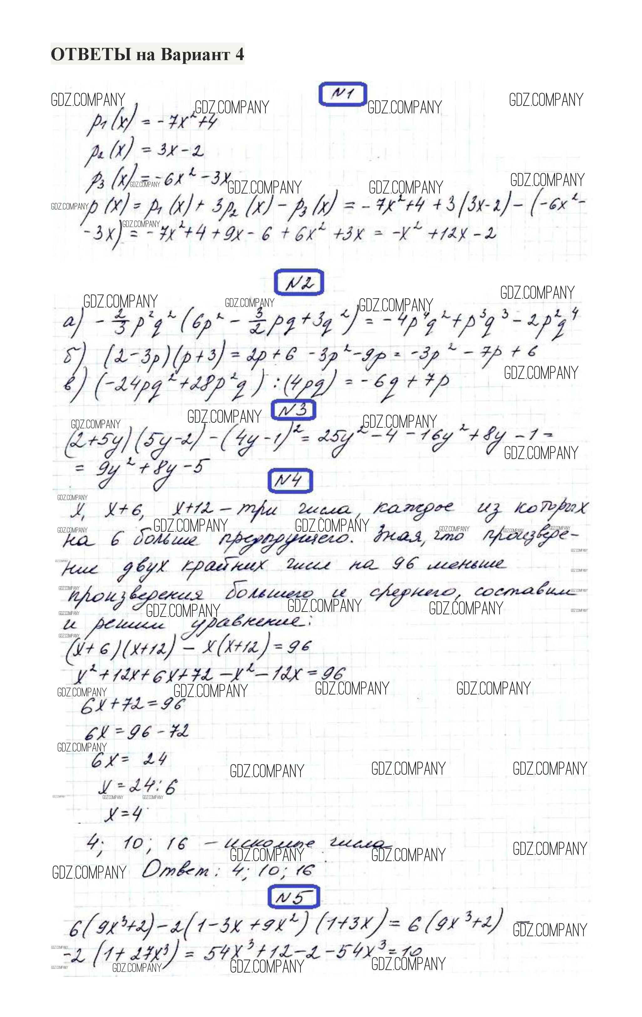 Здесь готовые ответы по Алгебре за 7 (седьмой) класс от Александрова Контрольные работы (издательство: Мнемозина от 2017 г.) № 4