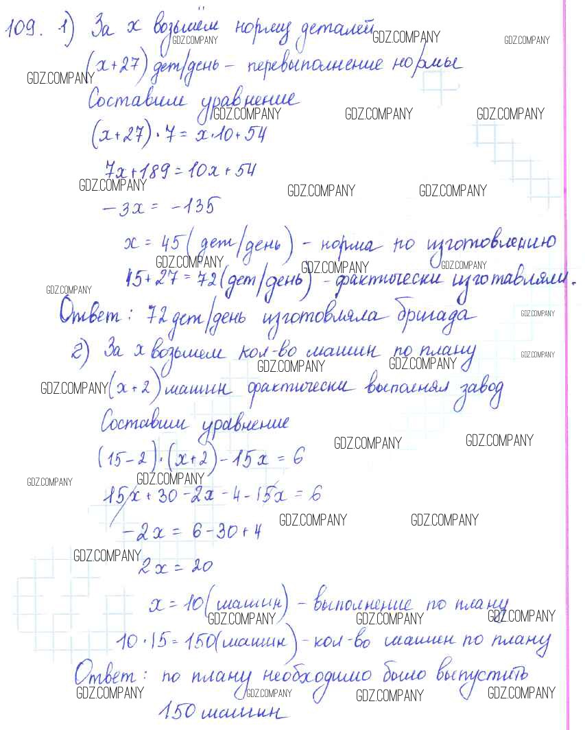Здесь готовые ответы по Алгебре за 7 (седьмой) класс от Алимов, Колягин, Сидоров Учебник (издательство: Просвещение от 2014 г.) № 109