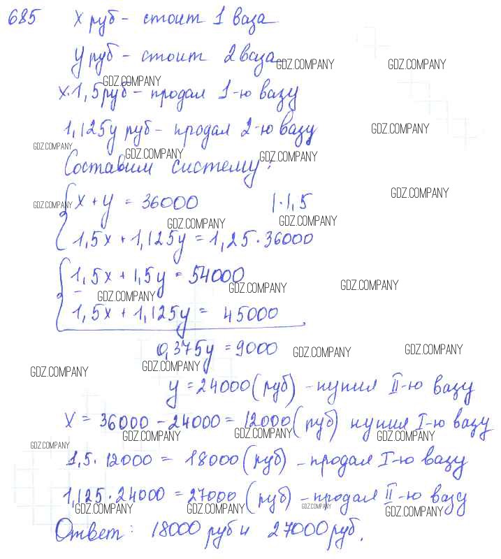 Здесь готовые ответы по Алгебре за 7 (седьмой) класс от Алимов, Колягин, Сидоров Учебник (издательство: Просвещение от 2014 г.) № 685