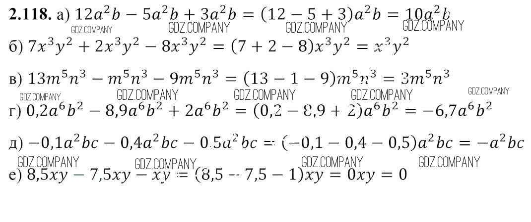 Здесь готовые ответы по Алгебре за 7 (седьмой) класс от Арефьева, Пирютко Учебник (издательство: Народная асвета от 2017 г.) № 2.118