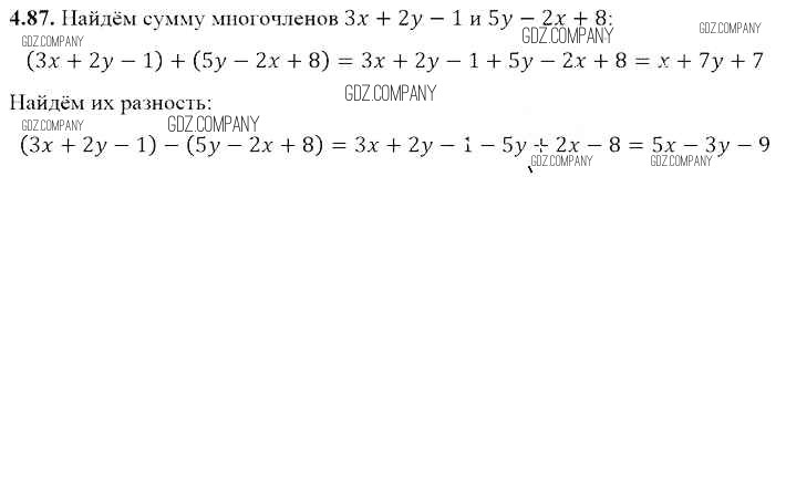 Здесь готовые ответы по Алгебре за 7 (седьмой) класс от Арефьева, Пирютко Учебник (издательство: Народная асвета от 2017 г.) № 4.87