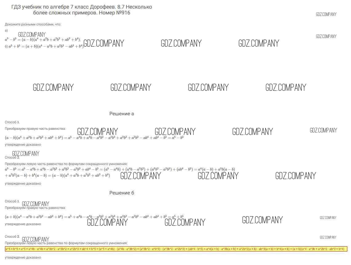 Здесь готовые ответы по Алгебре за 7 (седьмой) класс от Дорофеев, Суворова, Бунимович Учебник Академический школьный учебник (издательство: Просвещение от 2020 г.) № 916