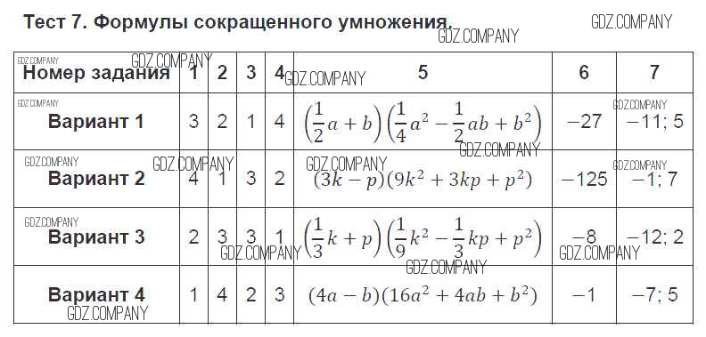 Здесь готовые ответы по Алгебре за 7 (седьмой) класс от Дудницын, Кронгауз Тематические тесты (издательство: Просвещение от 2011 г.) № 7