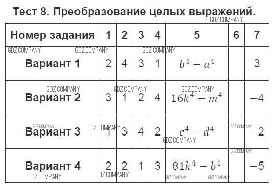 Здесь готовые ответы по Алгебре за 7 (седьмой) класс от Дудницын, Кронгауз Тематические тесты (издательство: Просвещение от 2011 г.) № 8