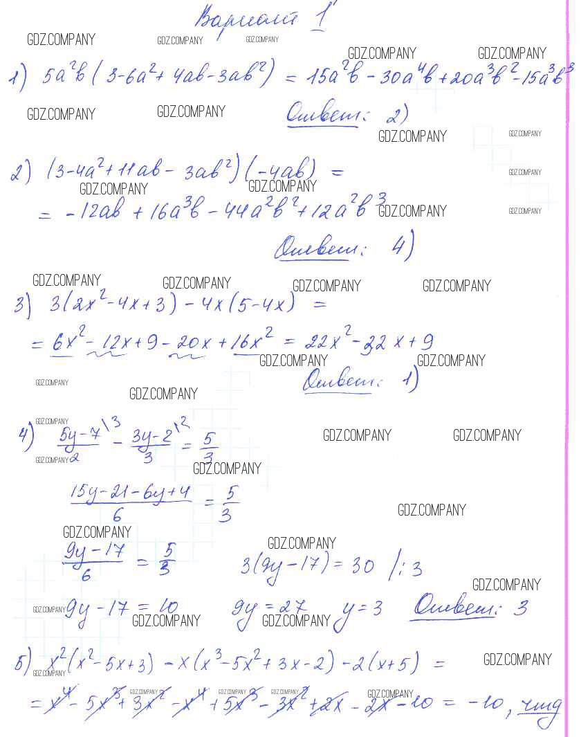 Здесь готовые ответы по Алгебре за 7 (седьмой) класс от Глазков, Гаиашвили Самостоятельные и контрольные работы УМК (издательство: Экзамен от 2019 г.) № вариант 1