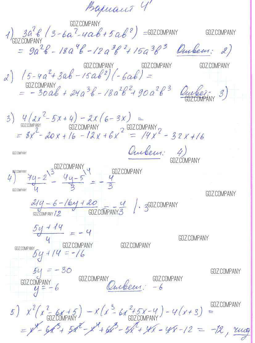 Здесь готовые ответы по Алгебре за 7 (седьмой) класс от Глазков, Гаиашвили Самостоятельные и контрольные работы УМК (издательство: Экзамен от 2019 г.) № вариант 4