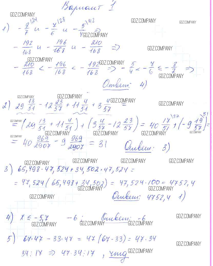 Здесь готовые ответы по Алгебре за 7 (седьмой) класс от Глазков, Гаиашвили Самостоятельные и контрольные работы УМК (издательство: Экзамен от 2019 г.) № вариант 1