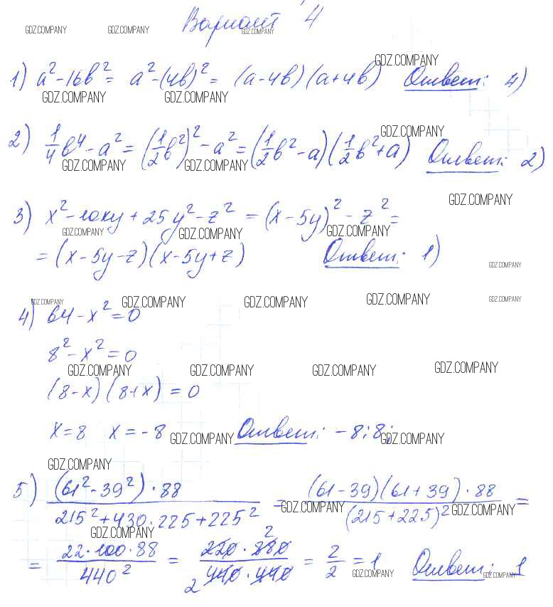 Здесь готовые ответы по Алгебре за 7 (седьмой) класс от Глазков, Гаиашвили Самостоятельные и контрольные работы УМК (издательство: Экзамен от 2019 г.) № вариант 4