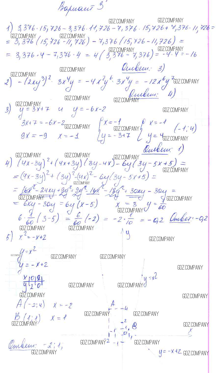 Здесь готовые ответы по Алгебре за 7 (седьмой) класс от Глазков, Гаиашвили Самостоятельные и контрольные работы УМК (издательство: Экзамен от 2019 г.) № вариант 3