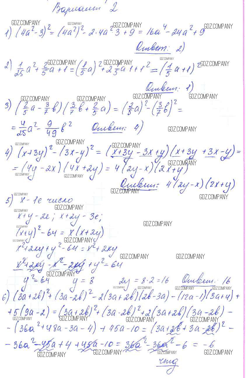 Здесь готовые ответы по Алгебре за 7 (седьмой) класс от Глазков, Гаиашвили Самостоятельные и контрольные работы УМК (издательство: Экзамен от 2019 г.) № вариант 2