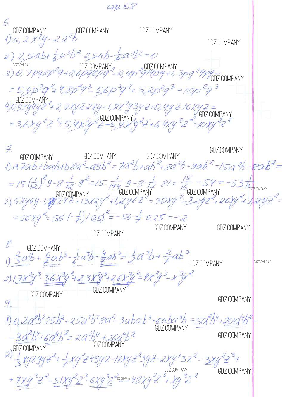 Здесь готовые ответы по Алгебре за 7 (седьмой) класс от Колягин, Ткачева, Федорова, Шабунин Рабочая тетрадь УМК (издательство: Просвещение от 2017 г.) № 58