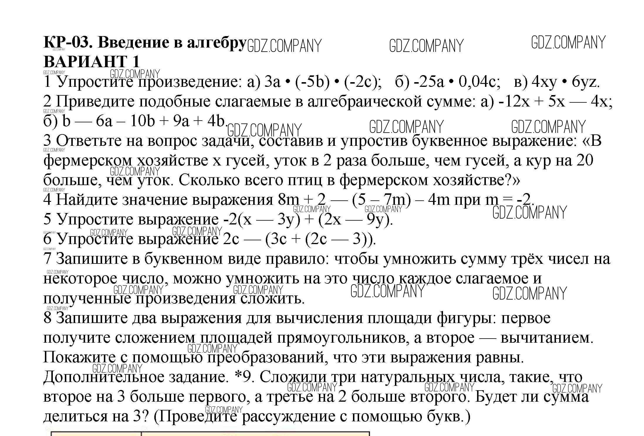 Здесь готовые ответы по Алгебре за 7 (седьмой) класс от Кузнецова, Минаева, Рослова, Суворова Контрольные работы (издательство: Просвещение от 2018 г.) № Вариант 1