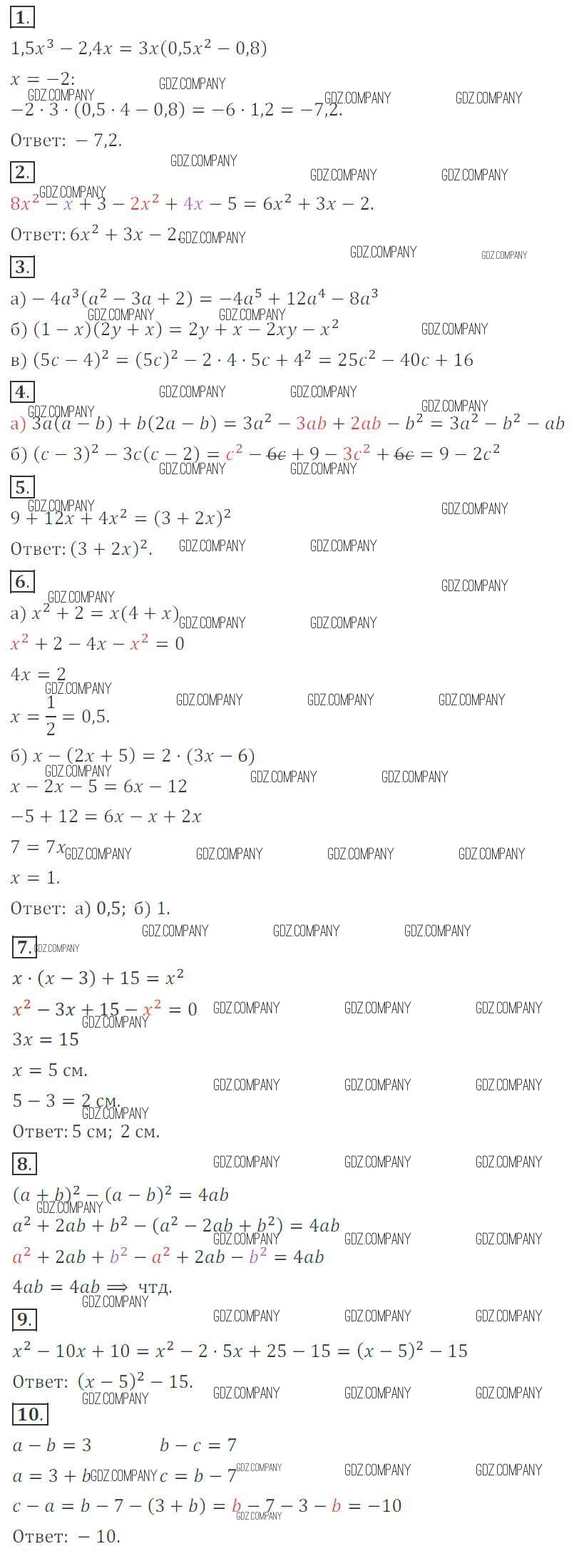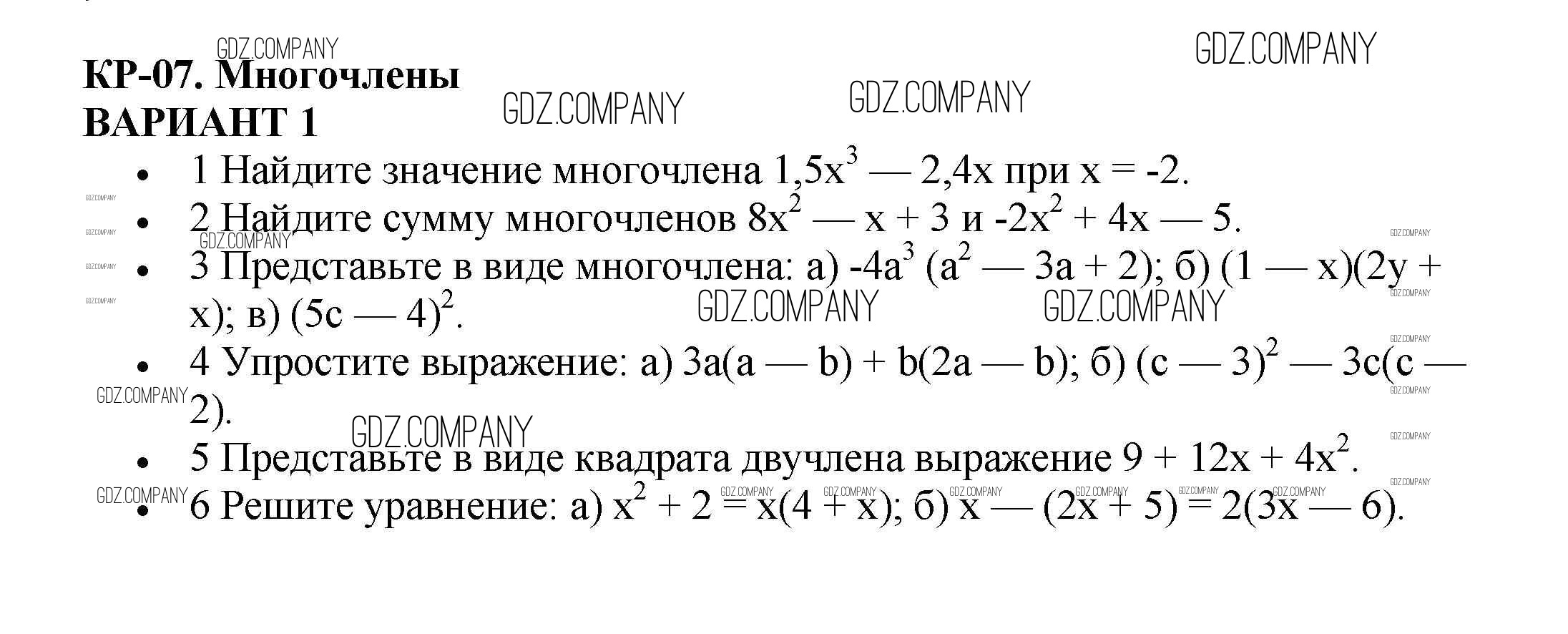 Здесь готовые ответы по Алгебре за 7 (седьмой) класс от Кузнецова, Минаева, Рослова, Суворова Контрольные работы (издательство: Просвещение от 2018 г.) № Вариант 1