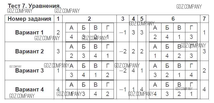 Здесь готовые ответы по Алгебре за 7 (седьмой) класс от Кузнецова, Минаева, Рослова, Суворова Тематические тесты (издательство: Просвещение от 2017 г.) № 7