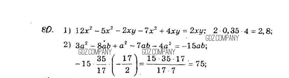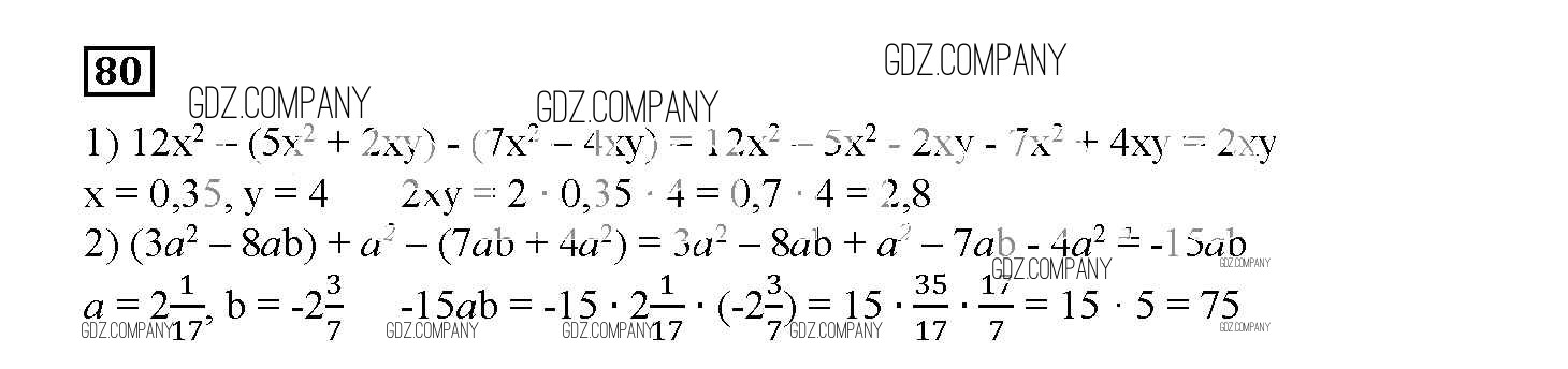 Здесь готовые ответы по Алгебре за 7 (седьмой) класс от Мерзляк, Полонский, Рабинович, Якир Дидактические материалы УМК (издательство: Вентана-граф от 2017 г.) № 80