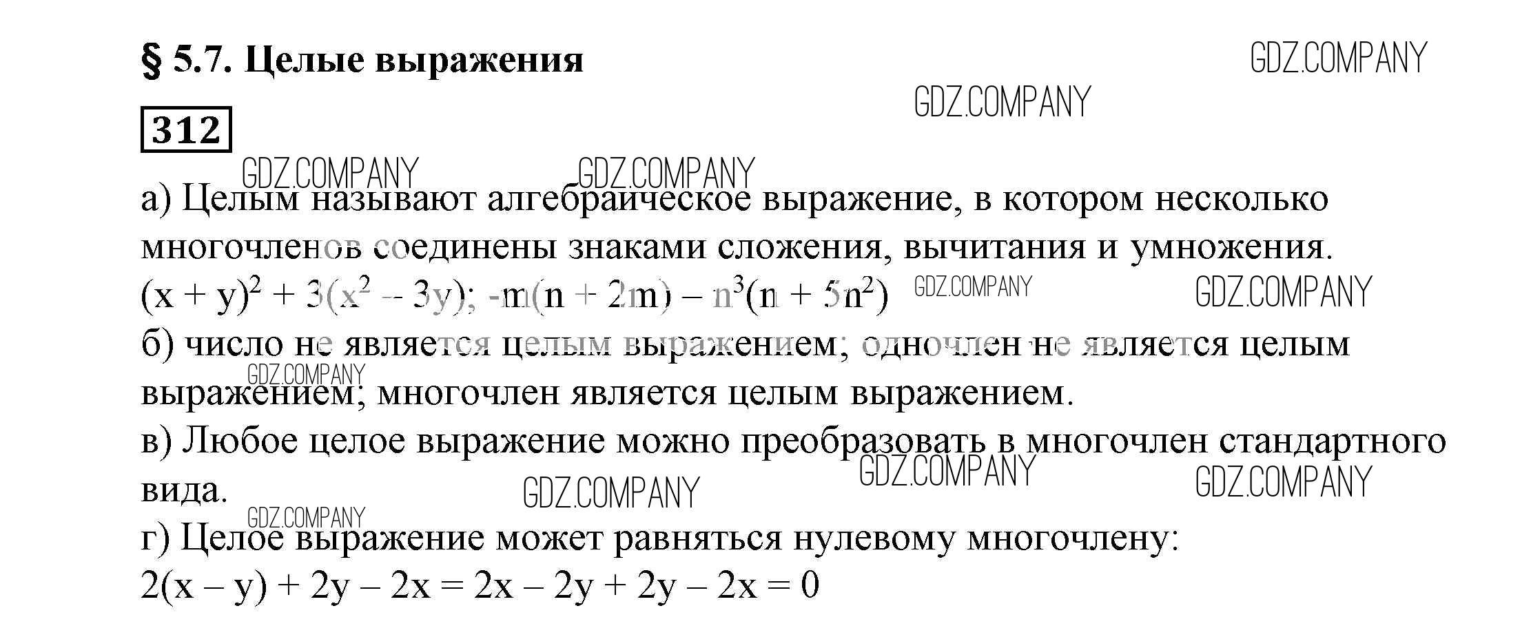 Здесь готовые ответы по Алгебре за 7 (седьмой) класс от Никольский, Потапов, Решетников, Шевкин Учебник МГУ - школе (издательство: Просвещение от 2013 г.) № 312