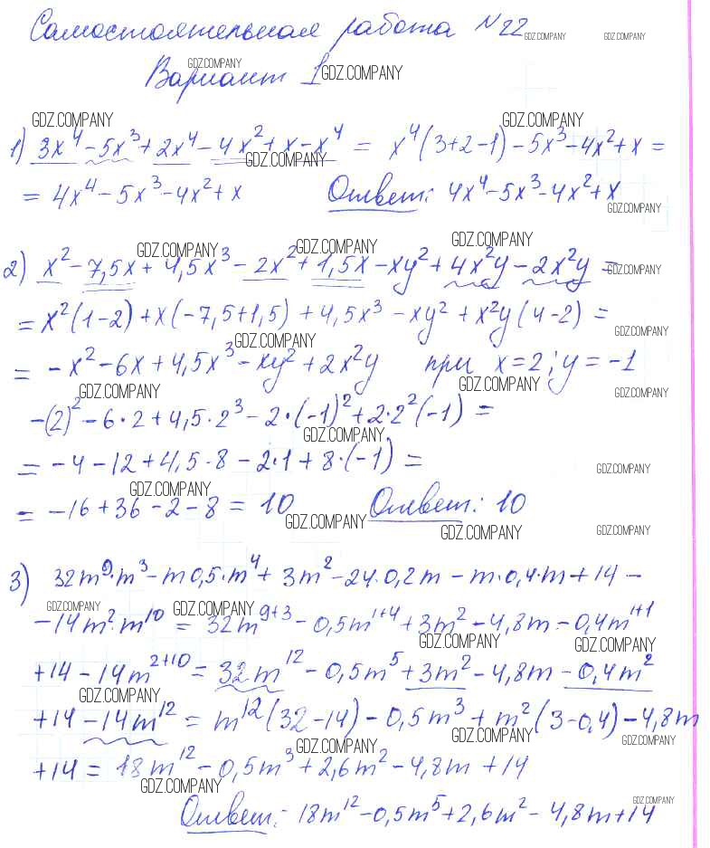 Здесь готовые ответы по Алгебре за 7 (седьмой) класс от Попов Контрольные и самостоятельные работы УМК (издательство: Экзамен от 2017 г.) № 1