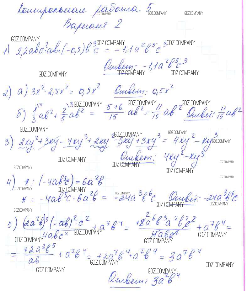 Здесь готовые ответы по Алгебре за 7 (седьмой) класс от Попов Контрольные и самостоятельные работы УМК (издательство: Экзамен от 2017 г.) № 2