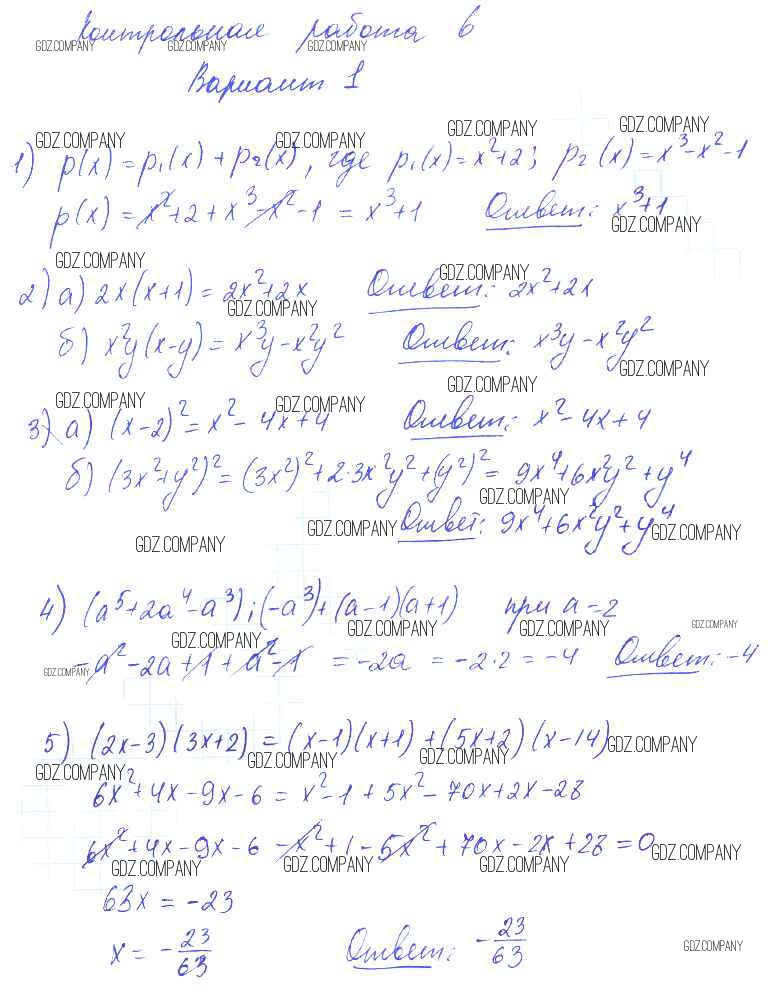 Здесь готовые ответы по Алгебре за 7 (седьмой) класс от Попов Контрольные и самостоятельные работы УМК (издательство: Экзамен от 2017 г.) № 1