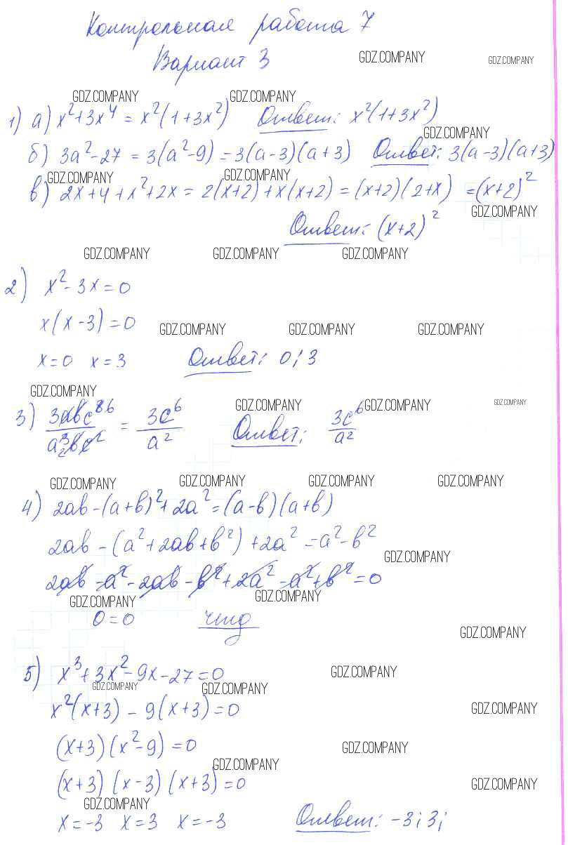 Здесь готовые ответы по Алгебре за 7 (седьмой) класс от Попов Контрольные и самостоятельные работы УМК (издательство: Экзамен от 2017 г.) № 3