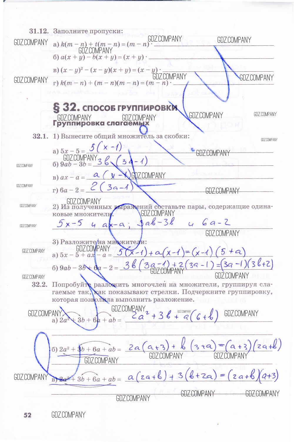 Здесь готовые ответы по Алгебре за 7 (седьмой) класс от Зубарева, Мильштейн Рабочая тетрадь (издательство: Мнемозина от 2019 г.) № 52