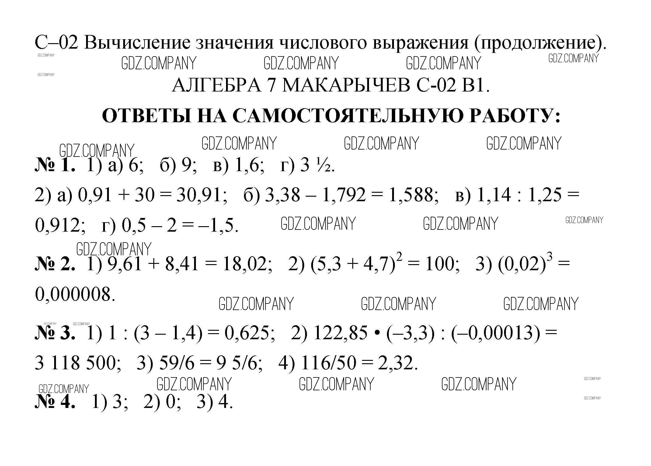 Здесь готовые ответы по Алгебре за 7 (седьмой) класс от Звавич, Кузнецова, Суворова Дидактические материалы (издательство: Просвещение от 2012 г.) № С-2. Вычисление значения числового выражения