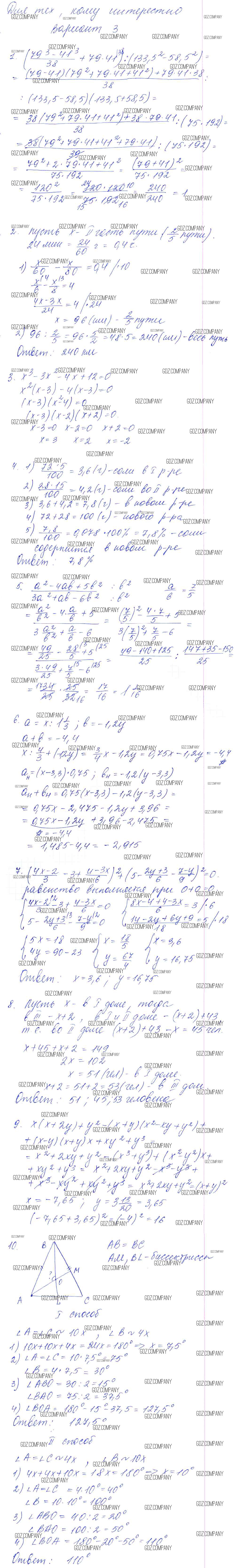 Здесь готовые ответы по Алгебре за 7 (седьмой) класс от Звавич, Дьяконова Дидактические материалы УМК (издательство: Экзамен от 2018 г.) № Вариант 3