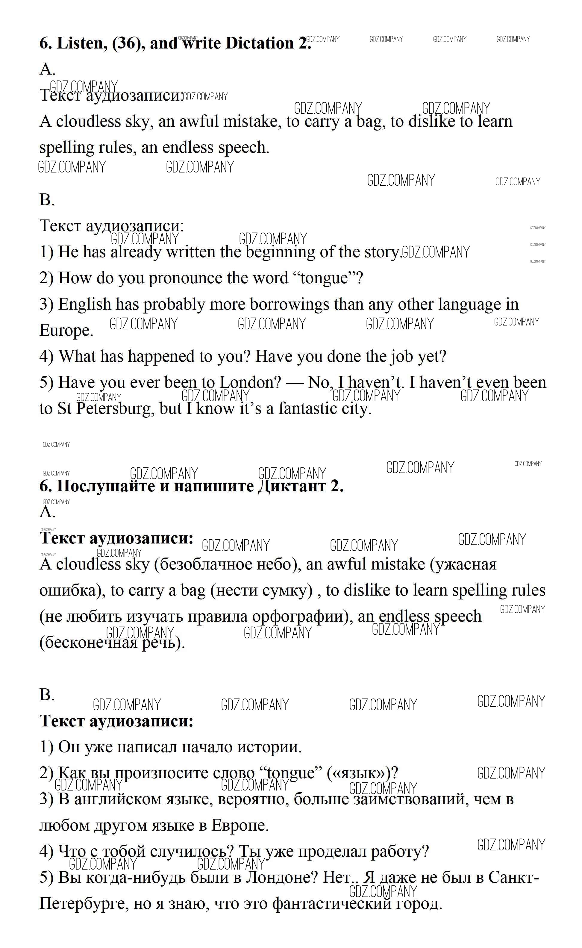 Здесь готовые ответы по Английскому языку за 7 (седьмой) класс от Афанасьева, Михеева, Баранова Учебник Rainbow (издательство: Дрофа от 2019 г.) № 6