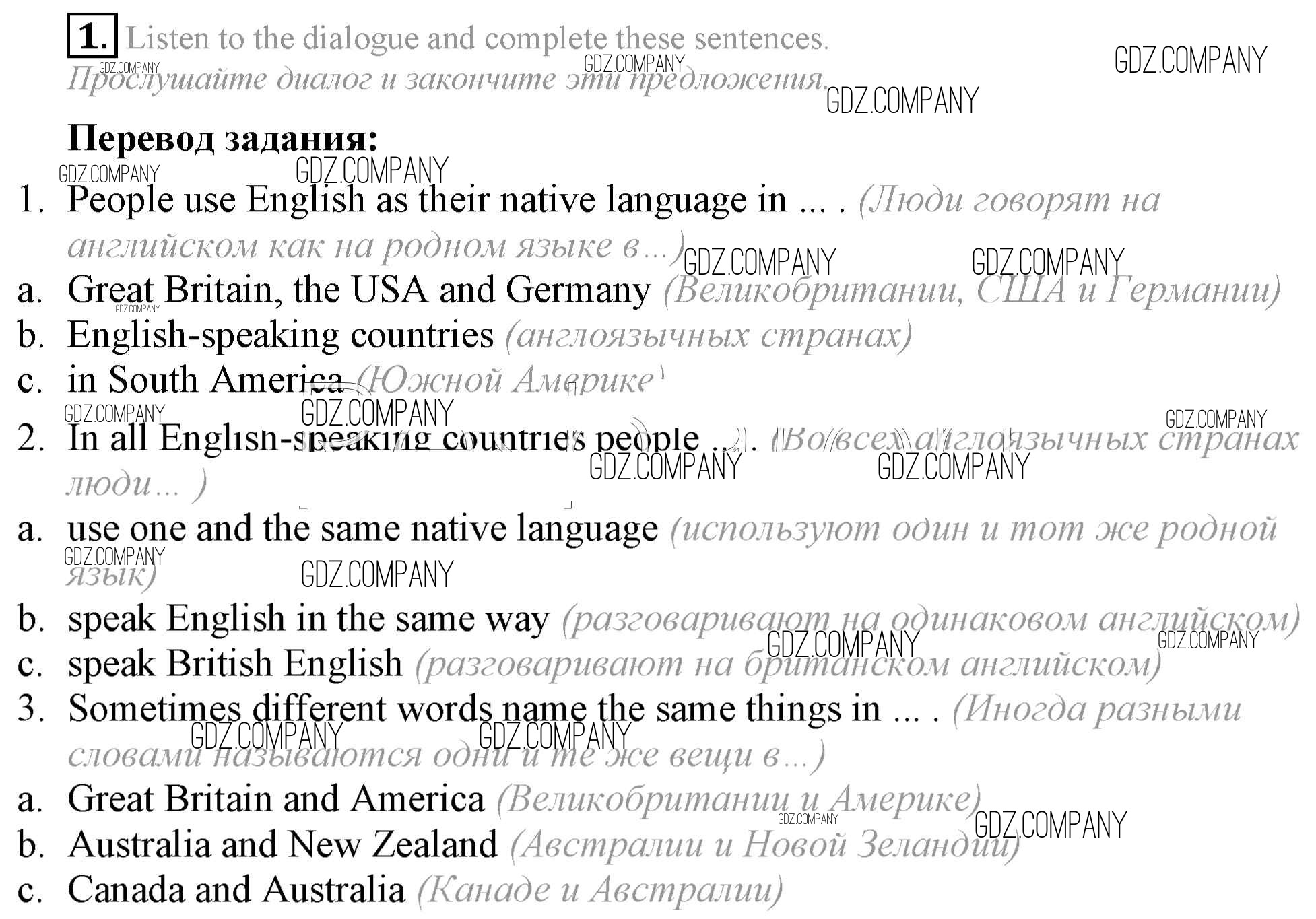 Здесь готовые ответы по Английскому языку за 7 (седьмой) класс от Афанасьева, Михеева, Баранова Учебник Rainbow (издательство: Дрофа от 2019 г.) № 1