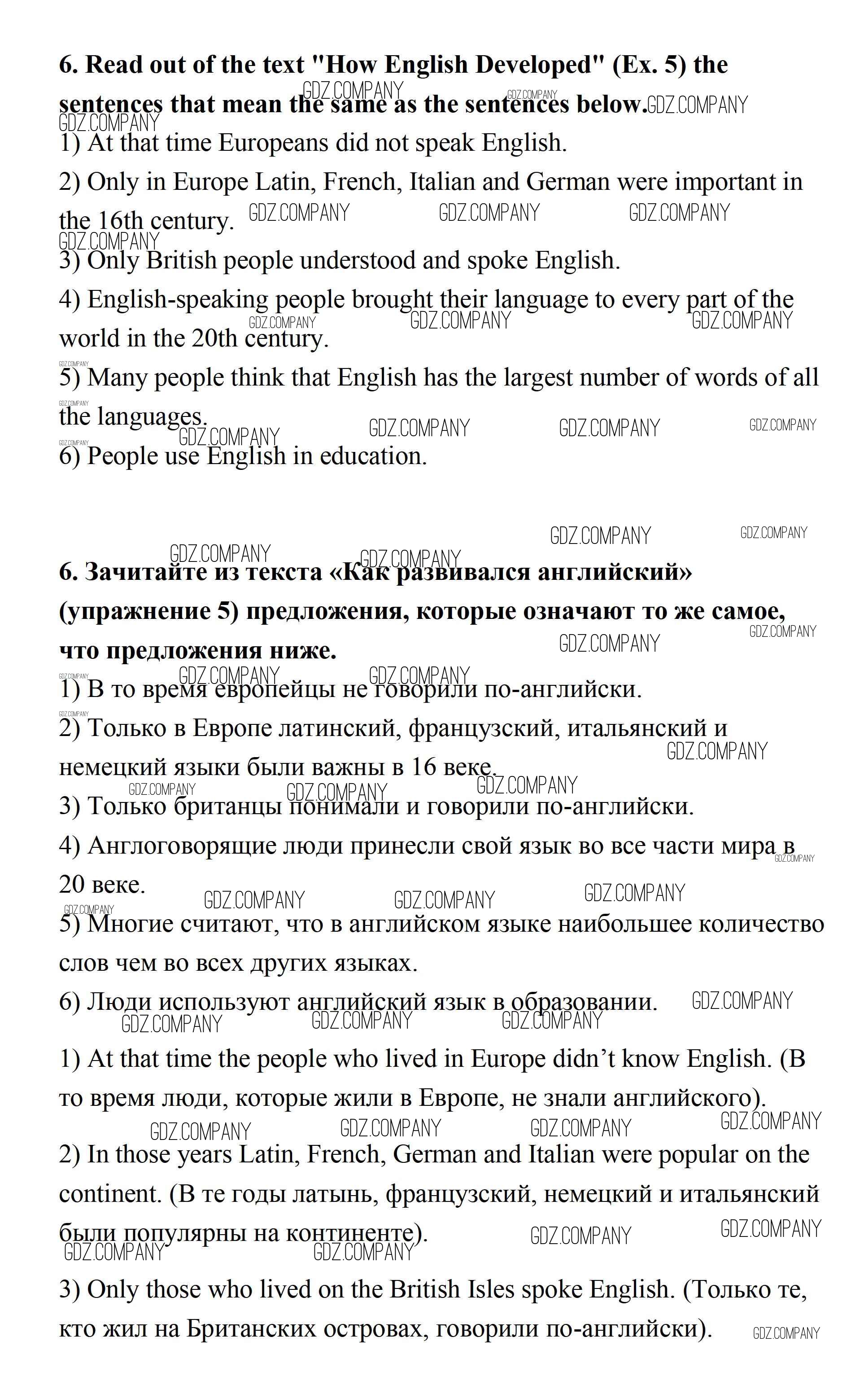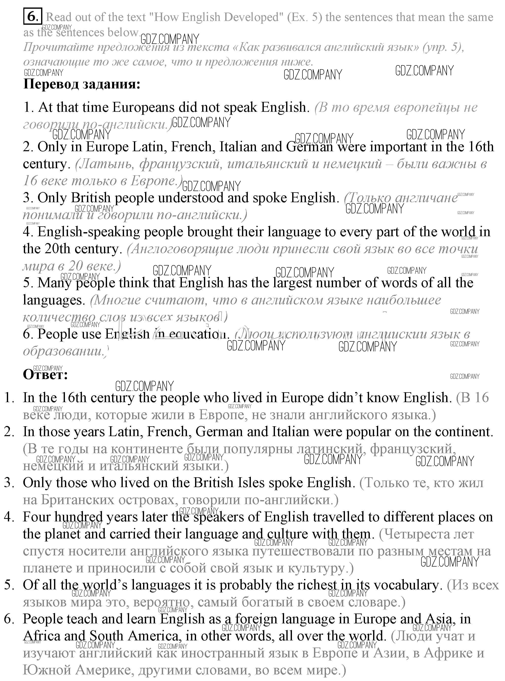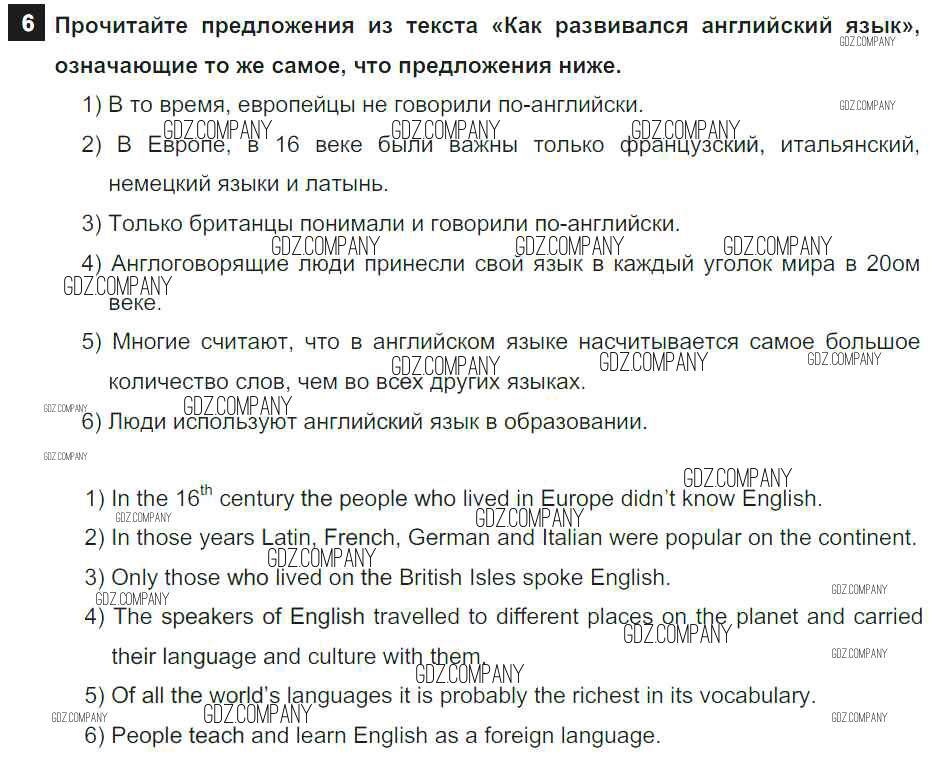 Здесь готовые ответы по Английскому языку за 7 (седьмой) класс от Афанасьева, Михеева, Баранова Учебник Rainbow (издательство: Дрофа от 2019 г.) № 6
