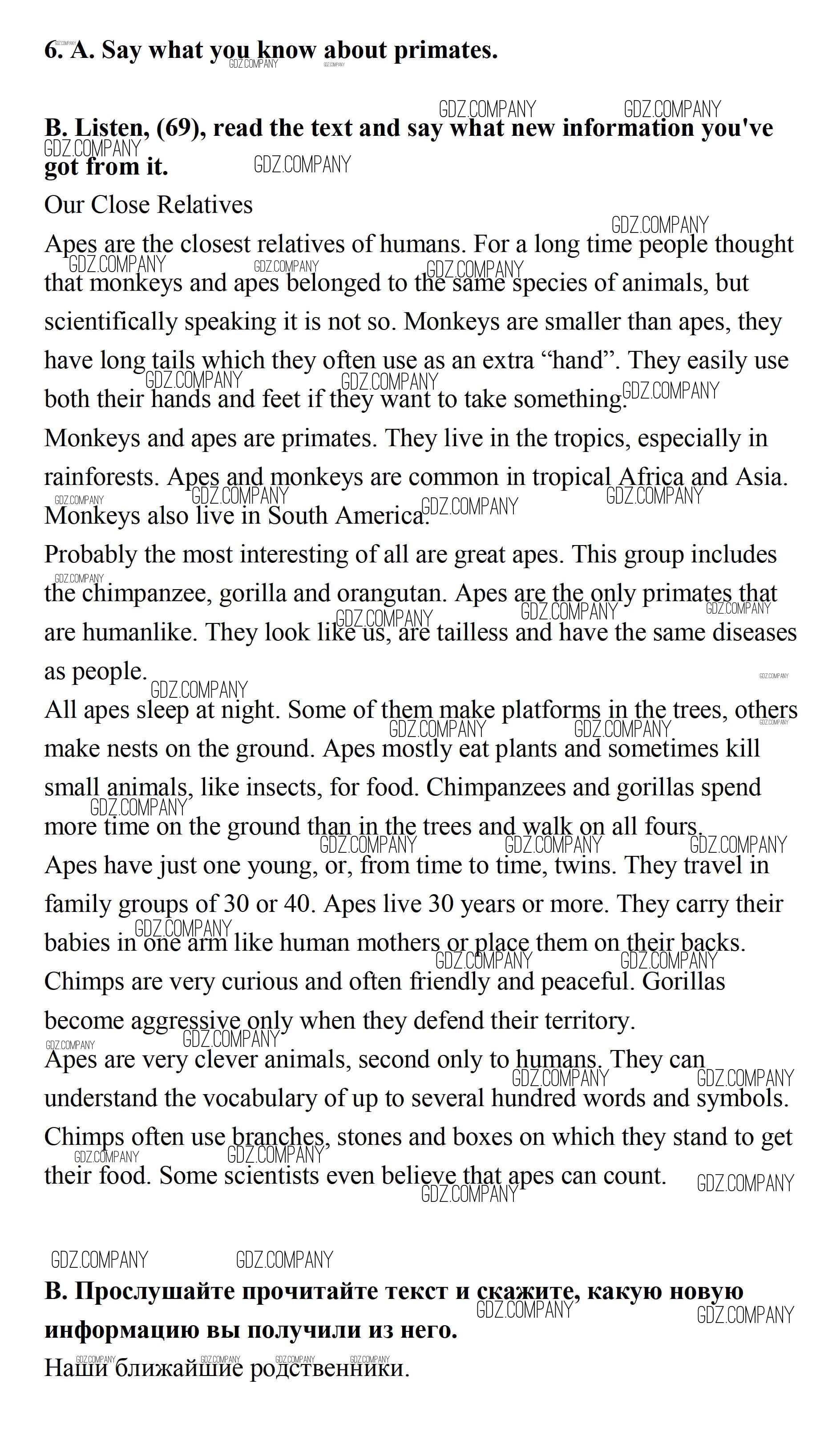 Здесь готовые ответы по Английскому языку за 7 (седьмой) класс от Афанасьева, Михеева, Баранова Учебник Rainbow (издательство: Дрофа от 2019 г.) № 6