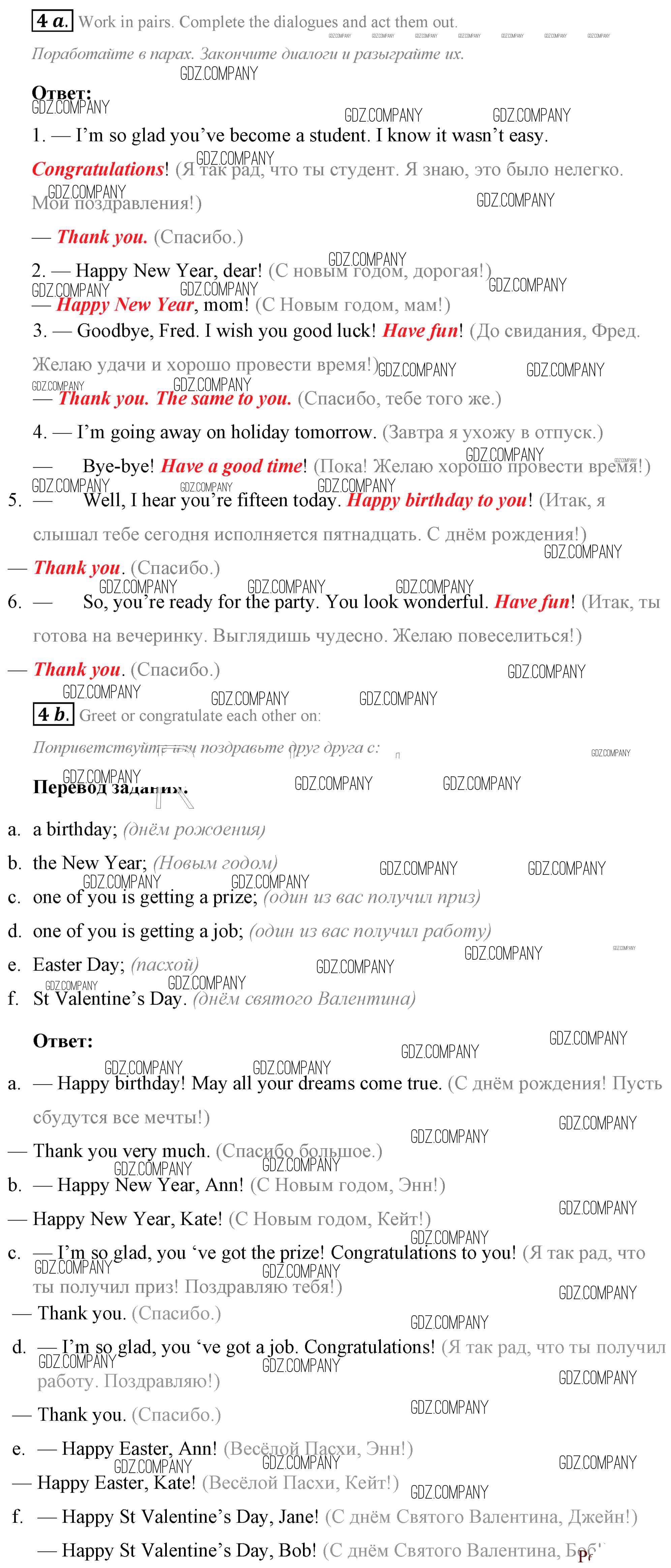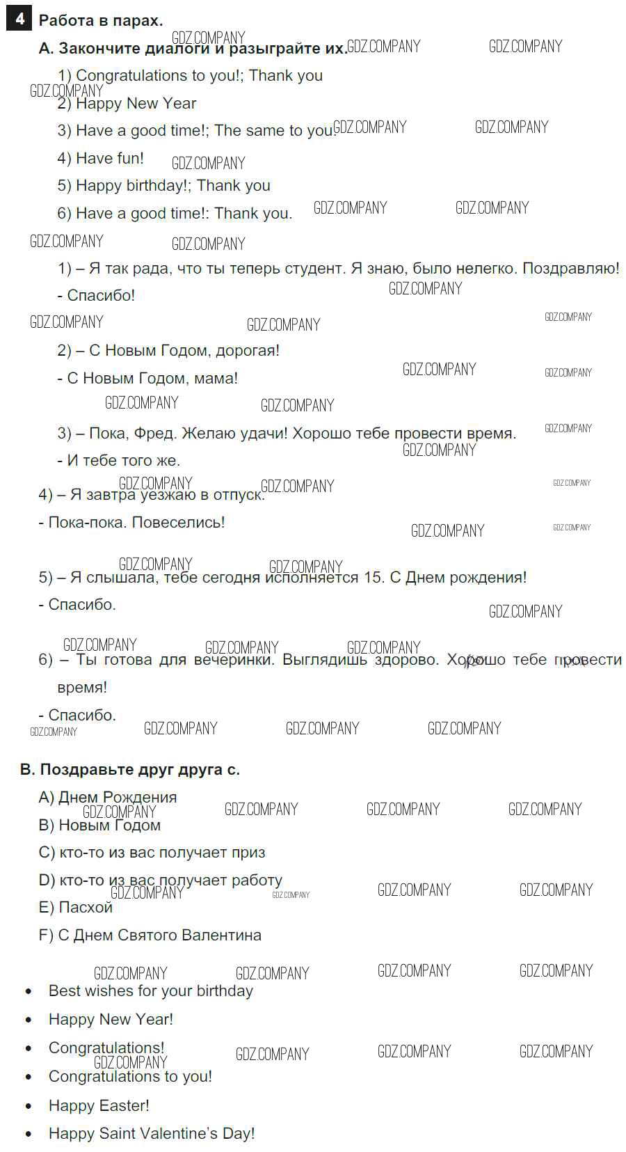 Здесь готовые ответы по Английскому языку за 7 (седьмой) класс от Афанасьева, Михеева, Баранова Учебник Rainbow (издательство: Дрофа от 2019 г.) № 4