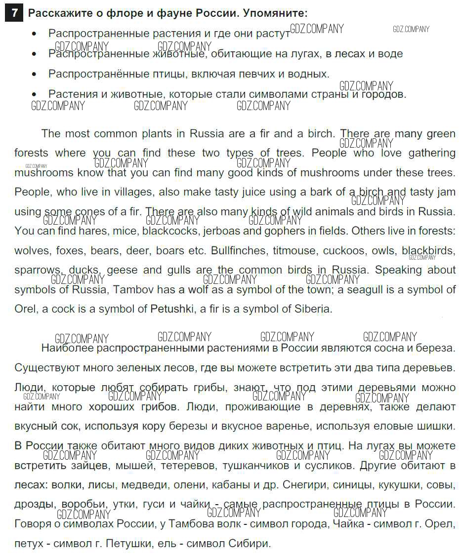 Здесь готовые ответы по Английскому языку за 7 (седьмой) класс от Афанасьева, Михеева, Баранова Учебник Rainbow (издательство: Дрофа от 2019 г.) № 7
