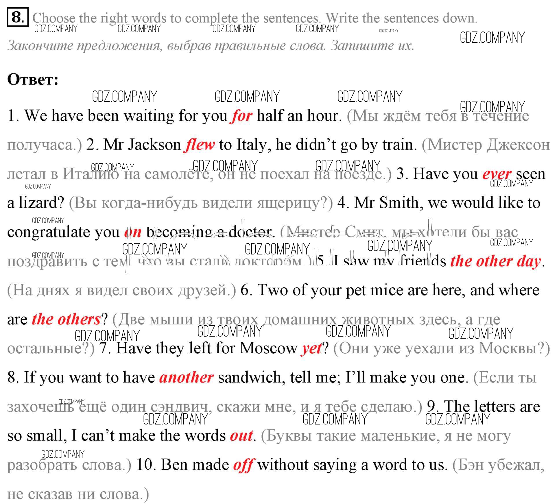 Здесь готовые ответы по Английскому языку за 7 (седьмой) класс от Афанасьева, Михеева, Баранова Учебник Rainbow (издательство: Дрофа от 2019 г.) № 8
