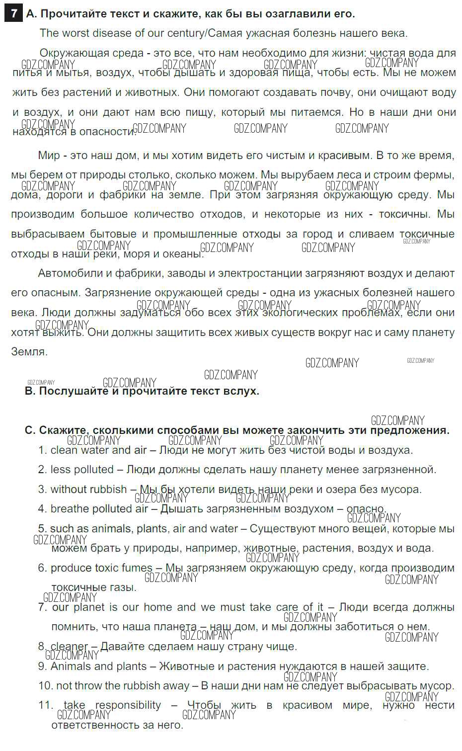 Здесь готовые ответы по Английскому языку за 7 (седьмой) класс от Афанасьева, Михеева, Баранова Учебник Rainbow (издательство: Дрофа от 2019 г.) № 7