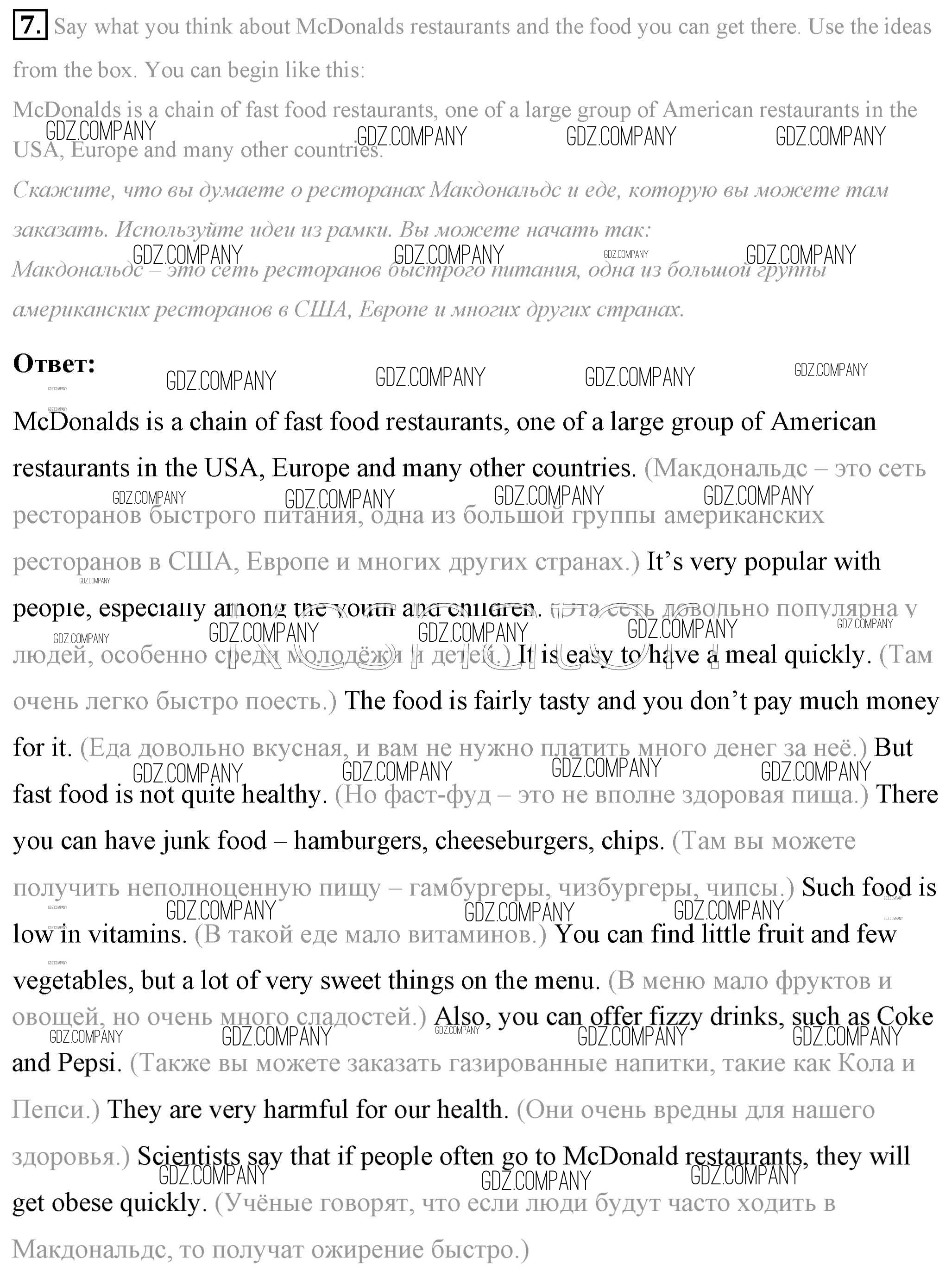 Здесь готовые ответы по Английскому языку за 7 (седьмой) класс от Афанасьева, Михеева, Баранова Учебник Rainbow (издательство: Дрофа от 2019 г.) № 7