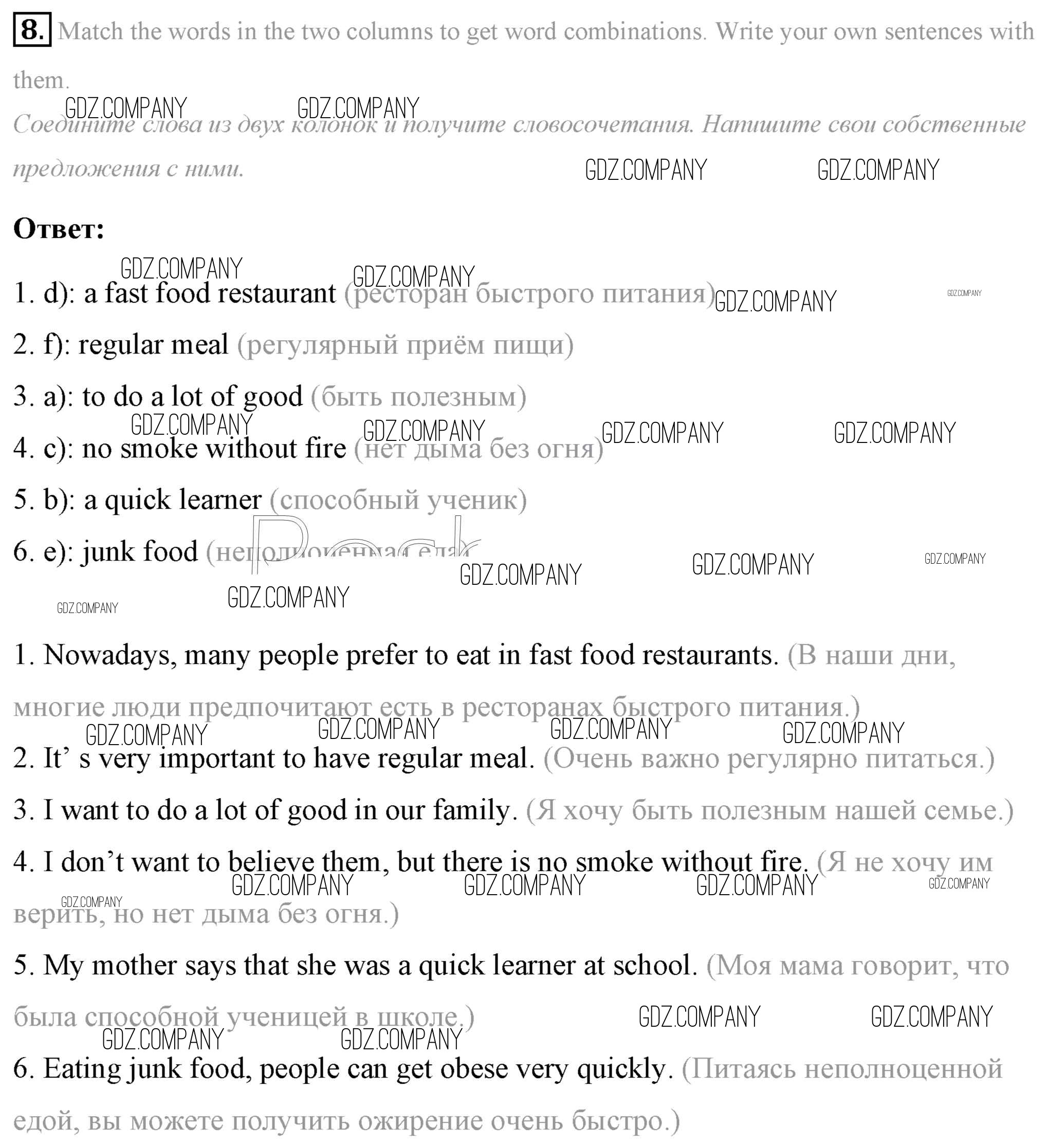 Здесь готовые ответы по Английскому языку за 7 (седьмой) класс от Афанасьева, Михеева, Баранова Учебник Rainbow (издательство: Дрофа от 2019 г.) № 8