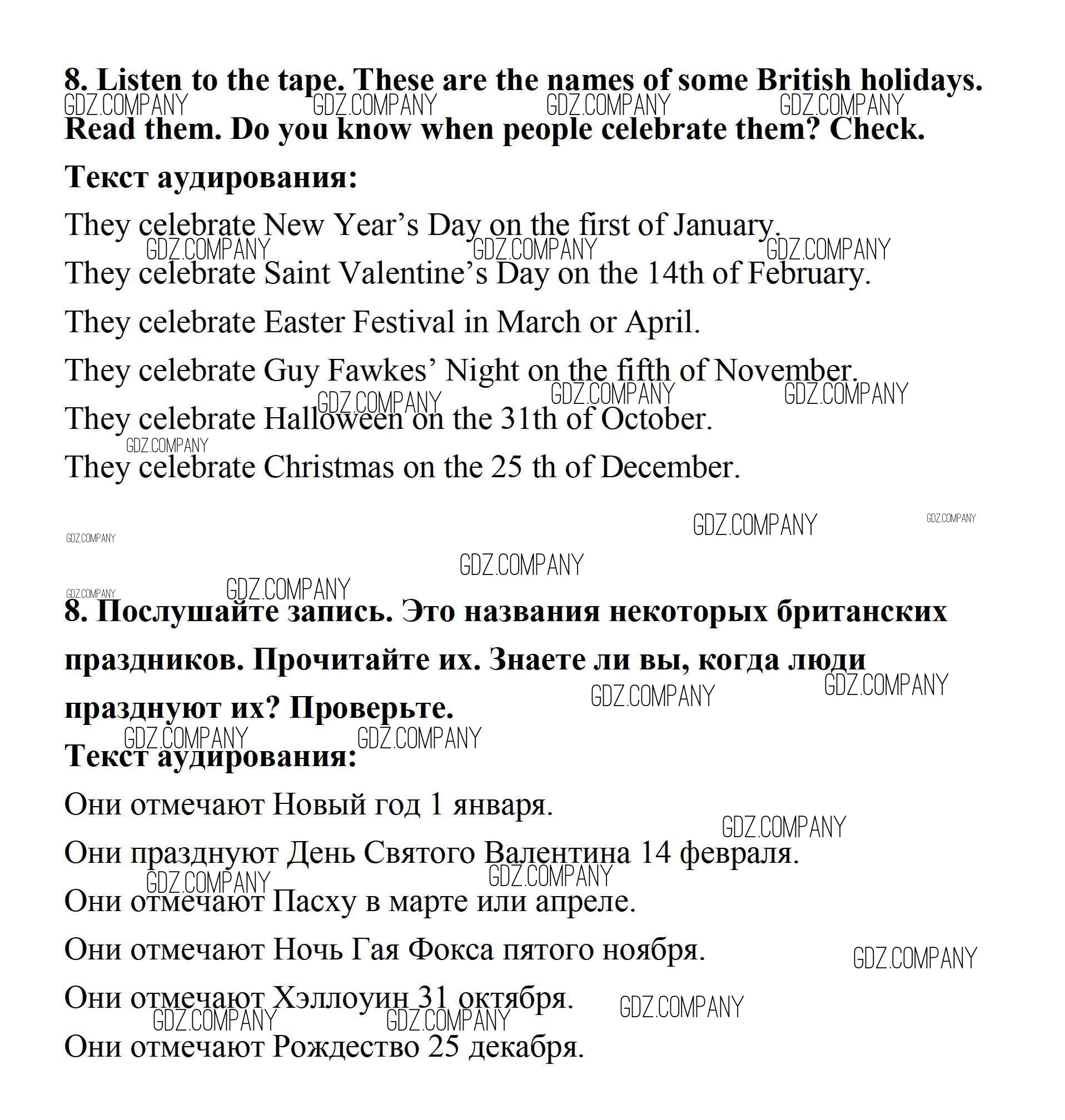 Здесь готовые ответы по Английскому языку за 7 (седьмой) класс от Афанасьева, Михеева Учебник Новый курс (издательство: Дрофа от 2015 г.) № 8