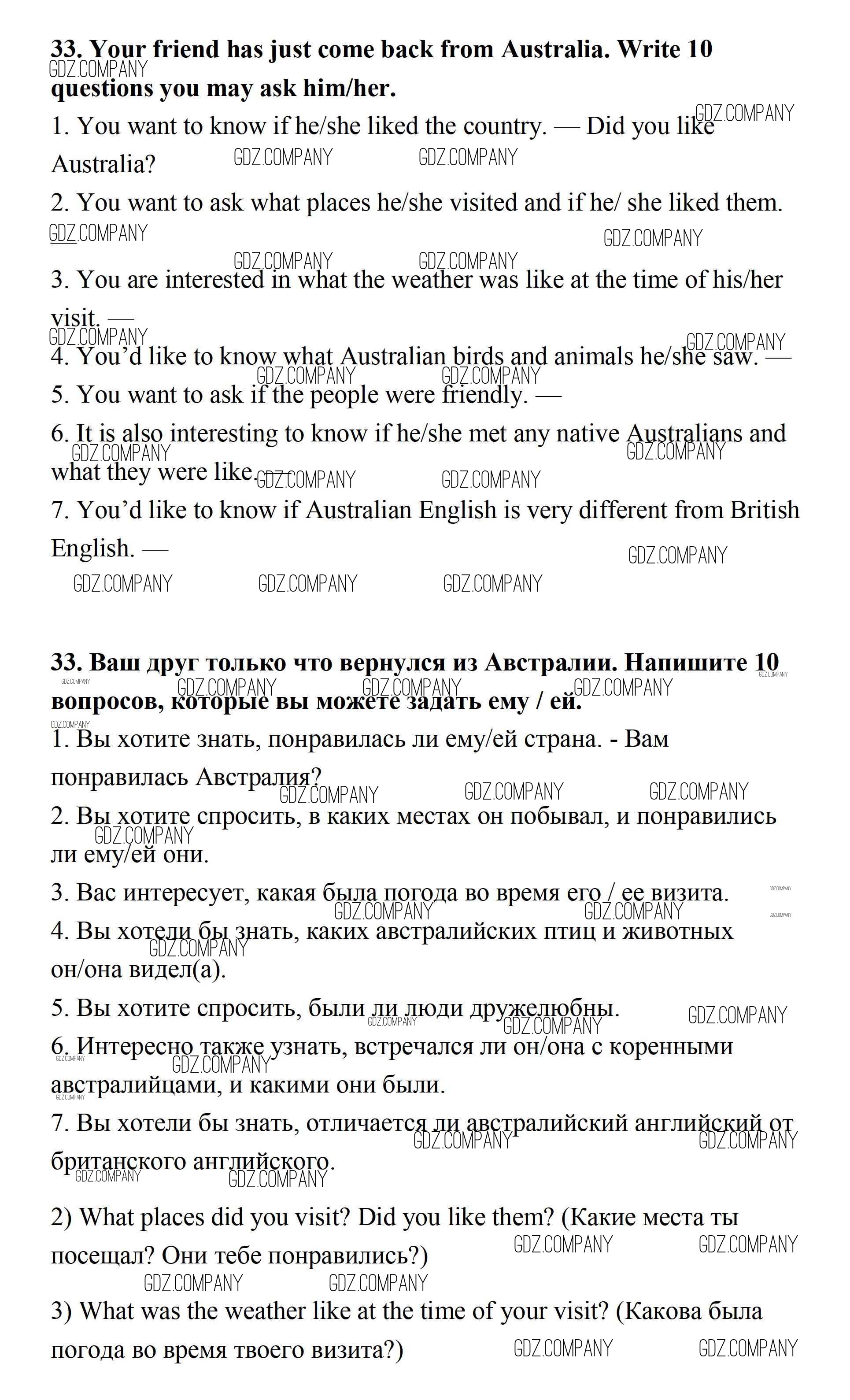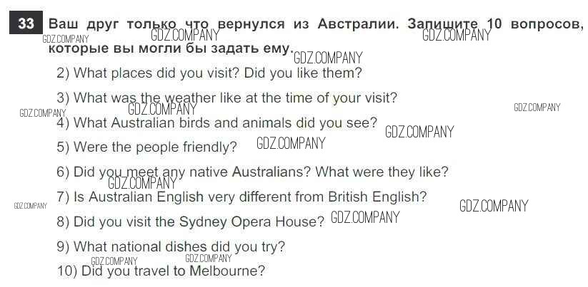 Здесь готовые ответы по Английскому языку за 7 (седьмой) класс от Афанасьева, Михеева, Баранова Рабочая тетрадь Rainbow (издательство: Дрофа от 2019 г.) № 33