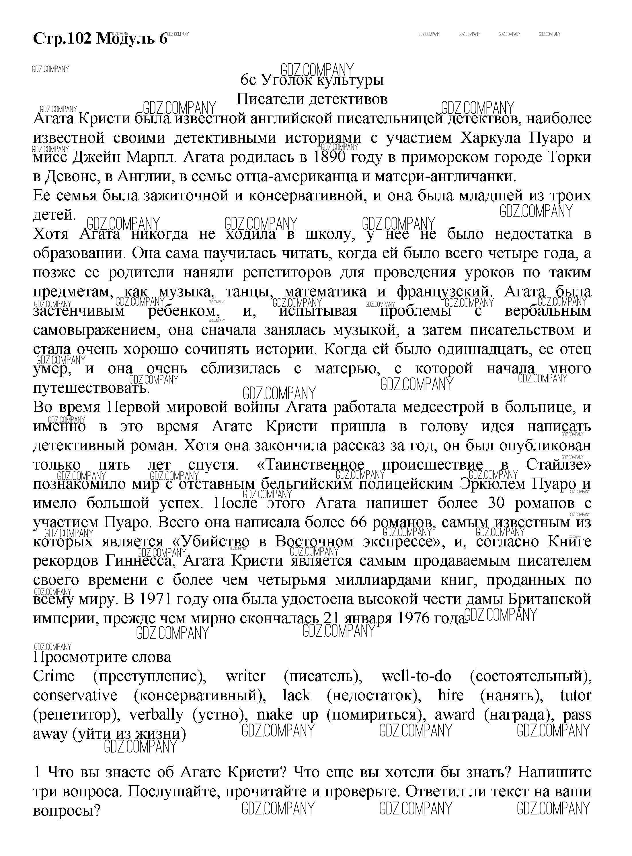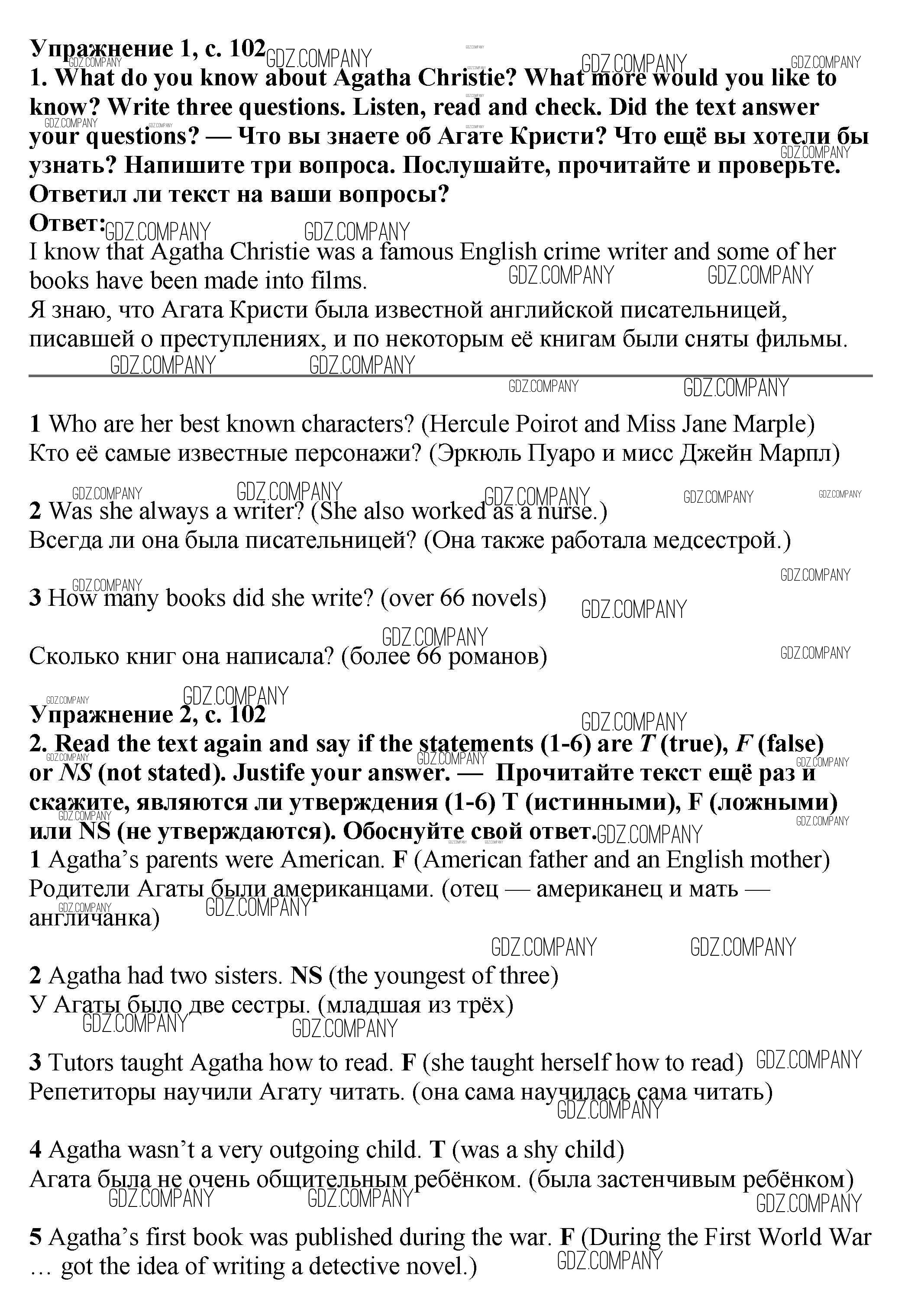 Здесь готовые ответы по Английскому языку за 7 (седьмой) класс от Баранова, Дули, Копылова Учебник Starlight Углубленный уровень (издательство: Просвещение от 2017 г.) № стр.102 Углубленный уровень