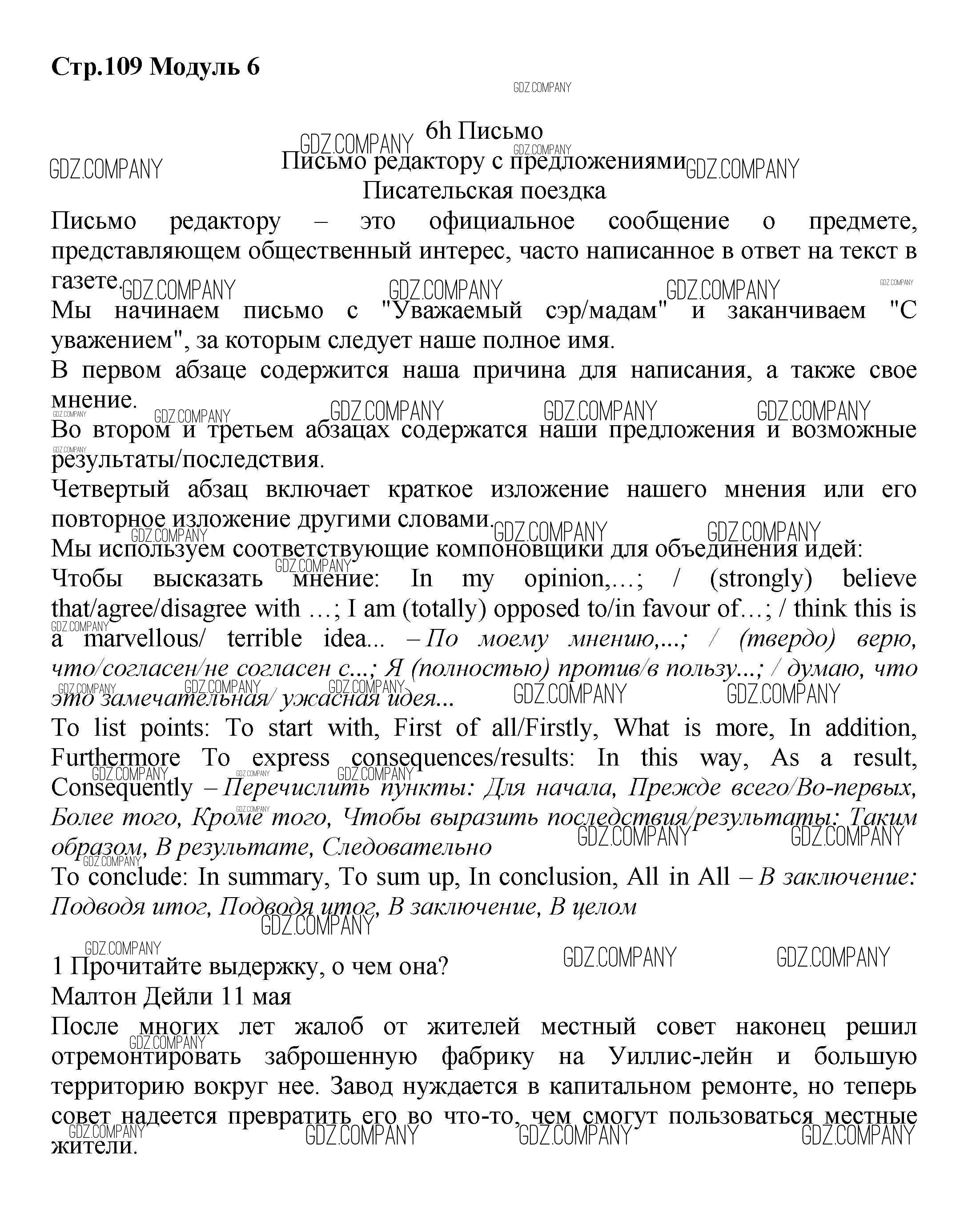 Здесь готовые ответы по Английскому языку за 7 (седьмой) класс от Баранова, Дули, Копылова Учебник Starlight Углубленный уровень (издательство: Просвещение от 2017 г.) № стр.109 Углубленный уровень