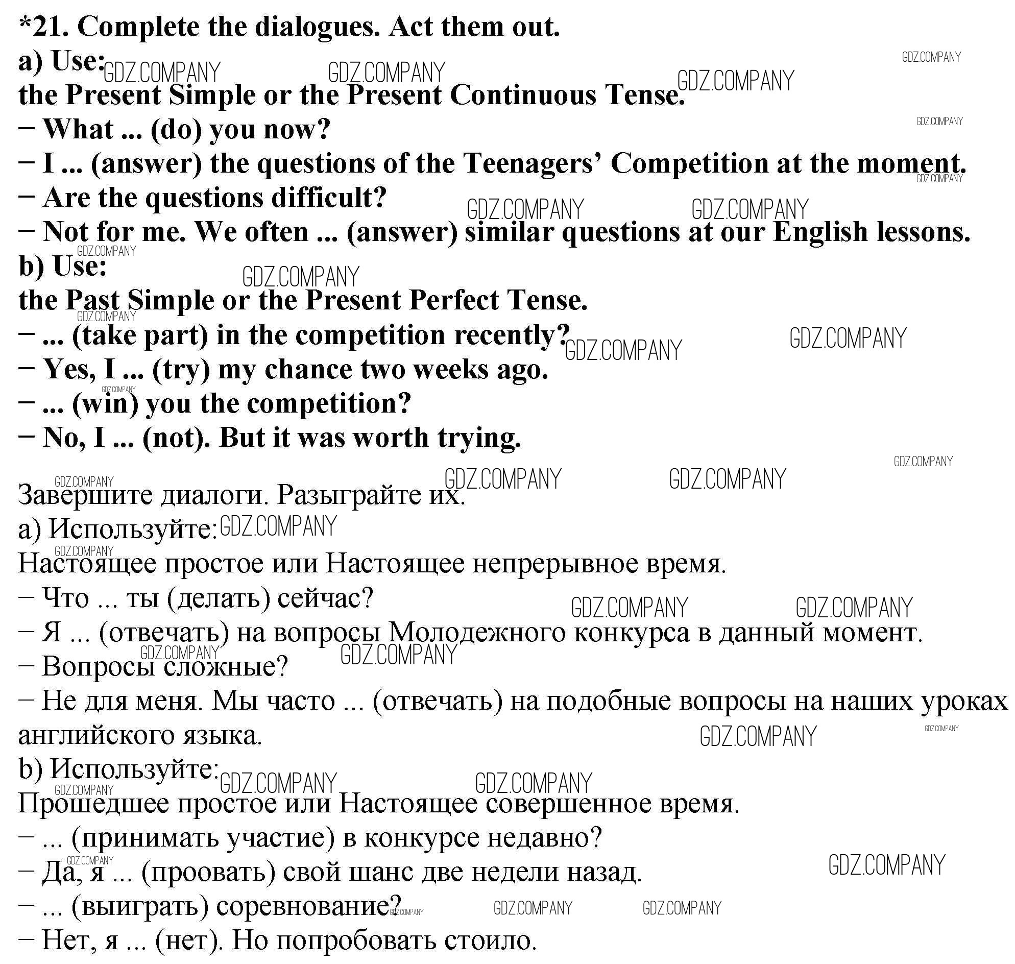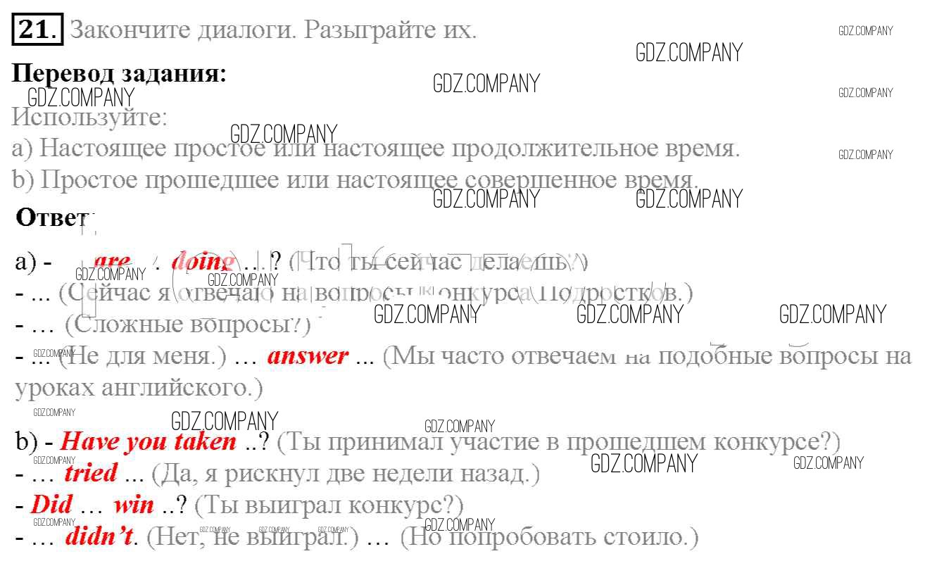 Здесь готовые ответы по Английскому языку за 7 (седьмой) класс от Биболетова, Трубанева Учебник УМК (издательство: Титул от 2015 г.) № 21