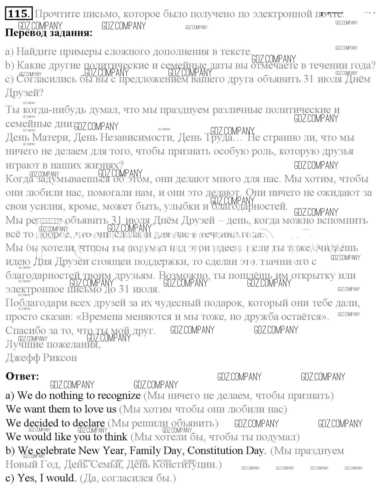 Здесь готовые ответы по Английскому языку за 7 (седьмой) класс от Биболетова, Трубанева Учебник УМК (издательство: Титул от 2015 г.) № 115