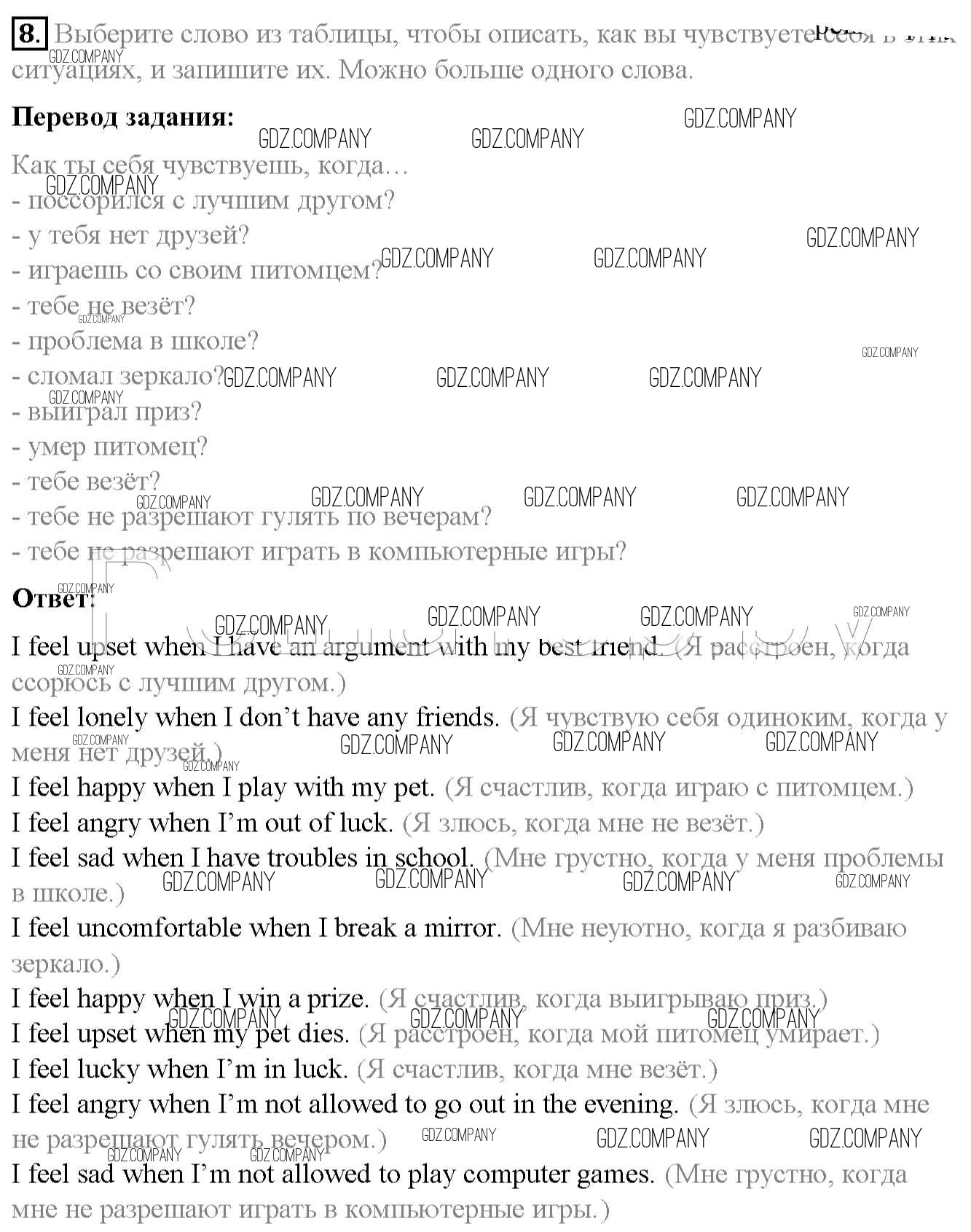 Здесь готовые ответы по Английскому языку за 7 (седьмой) класс от Биболетова, Трубанева Учебник УМК (издательство: Титул от 2015 г.) № 8