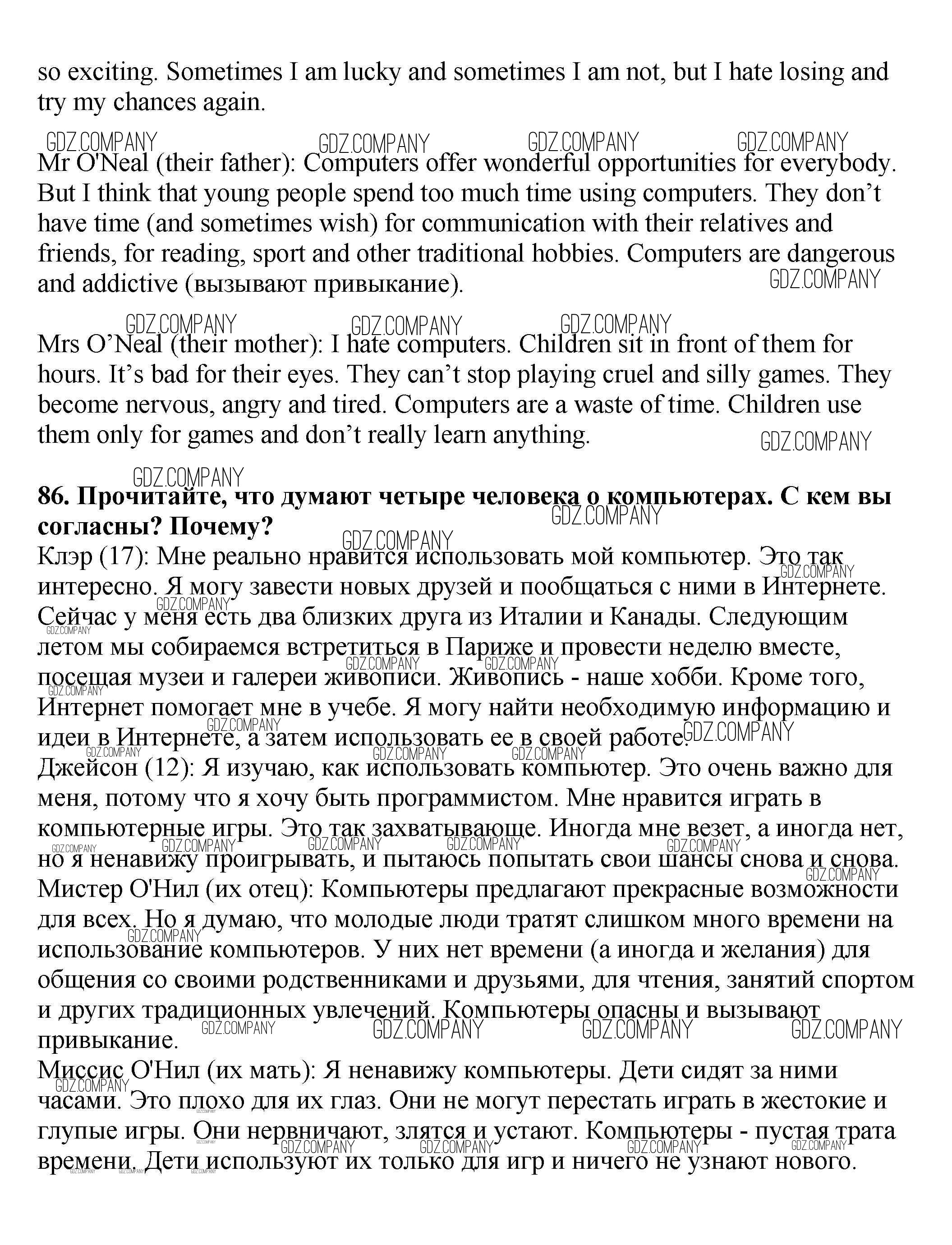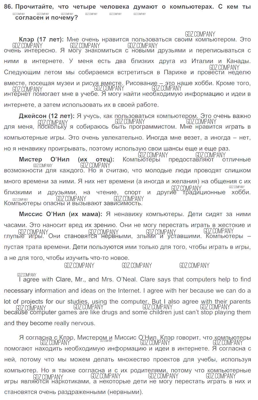 Здесь готовые ответы по Английскому языку за 7 (седьмой) класс от Биболетова, Трубанева Учебник УМК (издательство: Титул от 2015 г.) № 86
