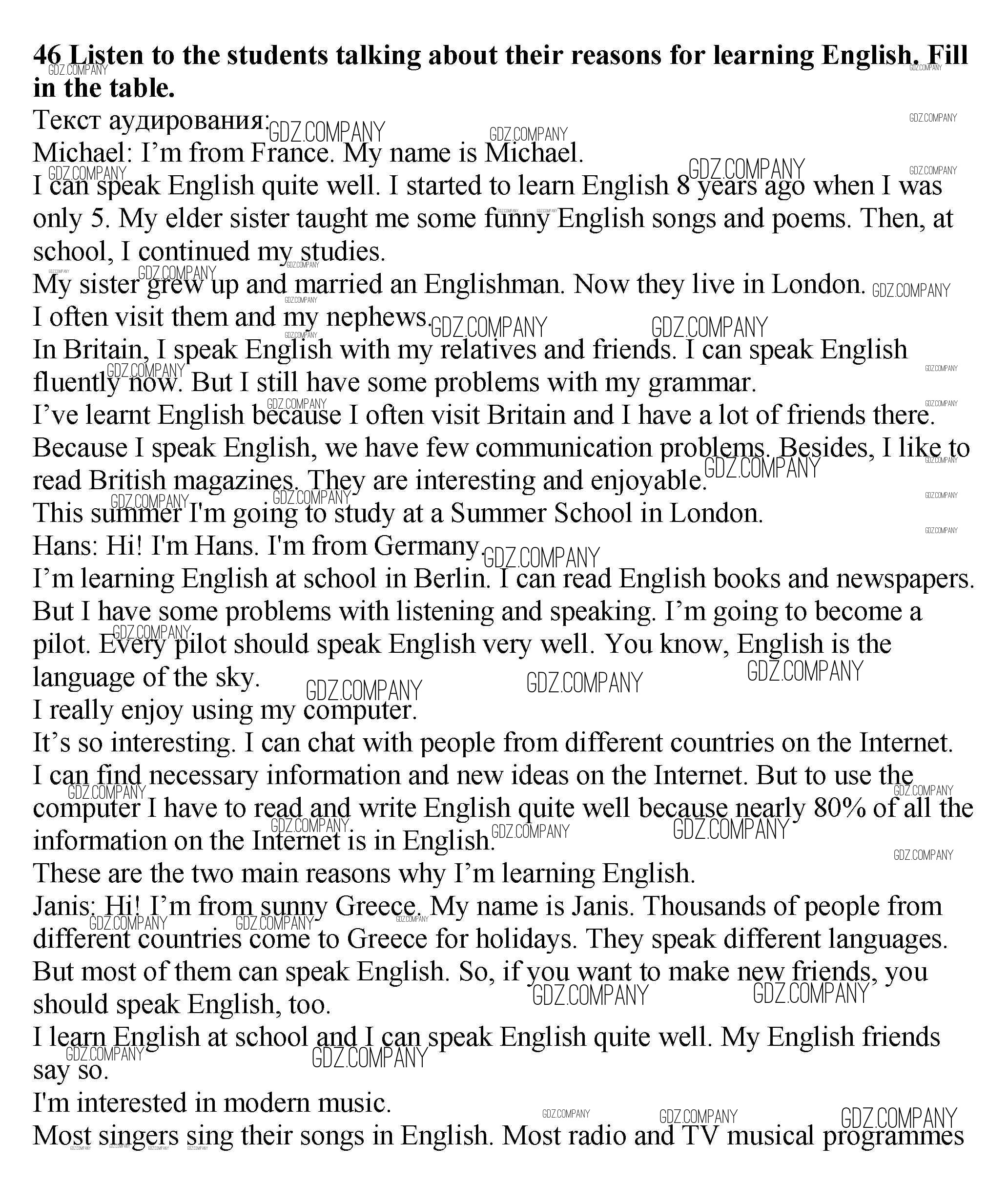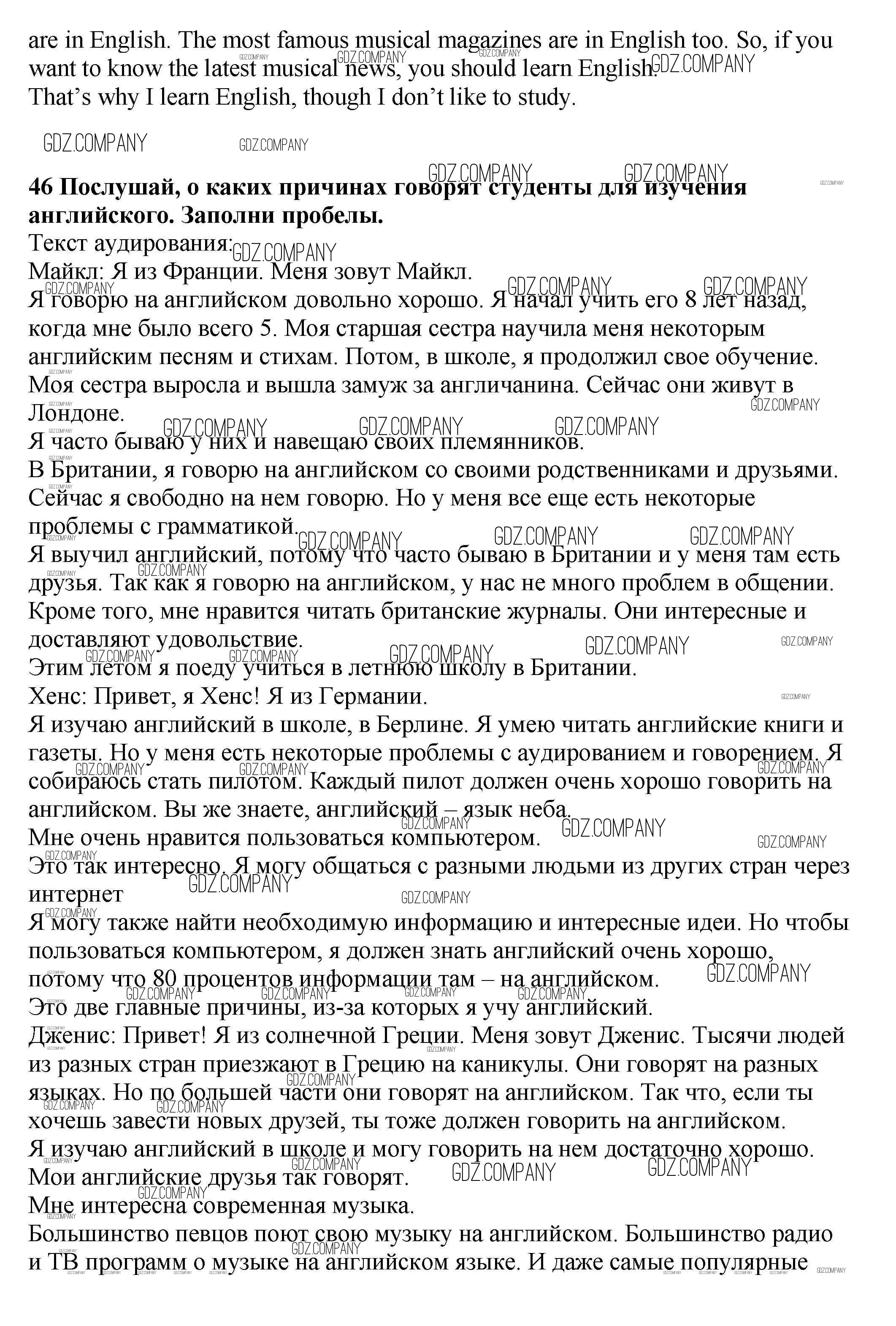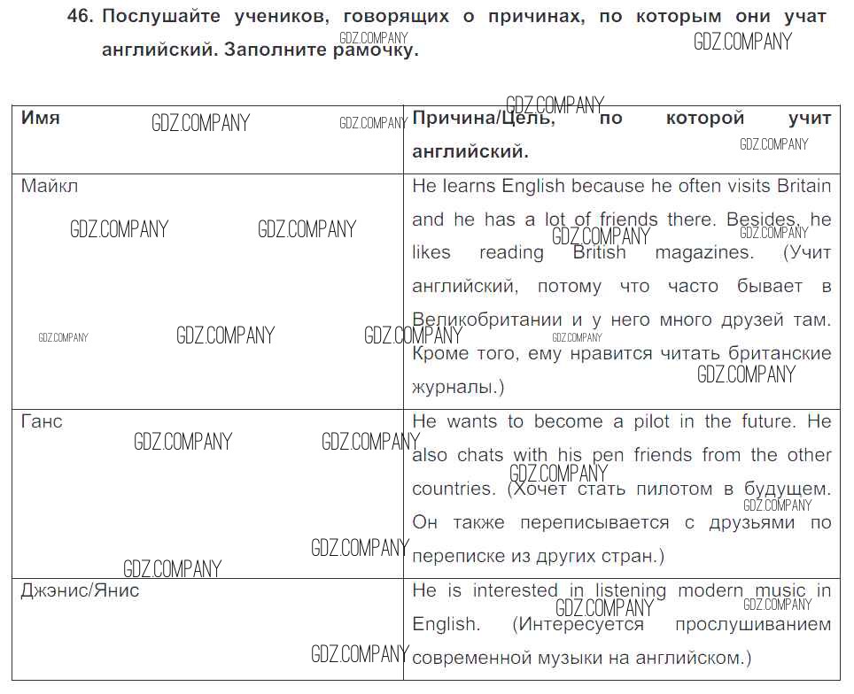 Здесь готовые ответы по Английскому языку за 7 (седьмой) класс от Биболетова, Трубанева Учебник УМК (издательство: Титул от 2015 г.) № 46