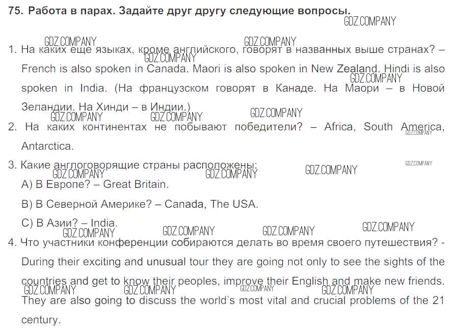 Здесь готовые ответы по Английскому языку за 7 (седьмой) класс от Биболетова, Трубанева Учебник УМК (издательство: Титул от 2015 г.) № 75