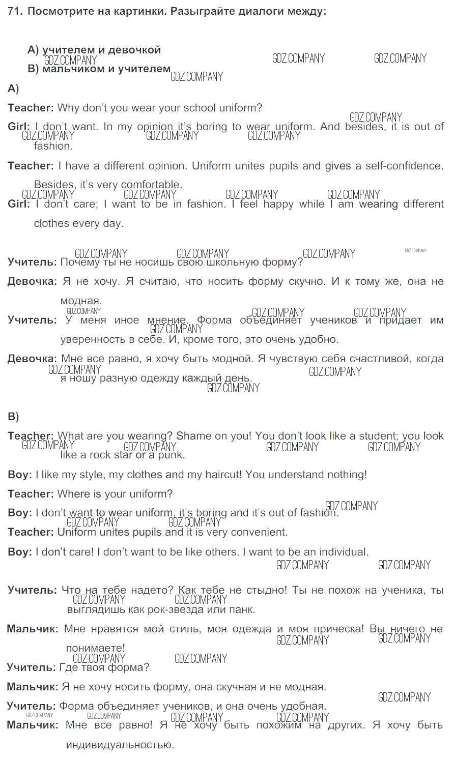 Здесь готовые ответы по Английскому языку за 7 (седьмой) класс от Биболетова, Трубанева Учебник УМК (издательство: Титул от 2015 г.) № 71