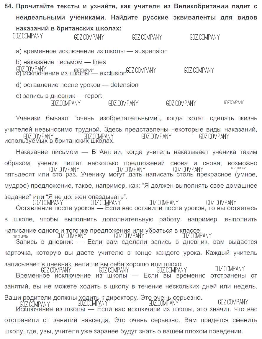 Здесь готовые ответы по Английскому языку за 7 (седьмой) класс от Биболетова, Трубанева Учебник УМК (издательство: Титул от 2015 г.) № 84